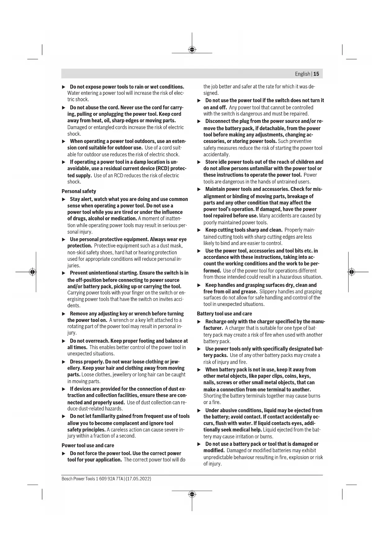 body is earthed or grounded. 1 609 92A 7TA | (17.05.2022) Bosch Power ToolsEnglish | 15