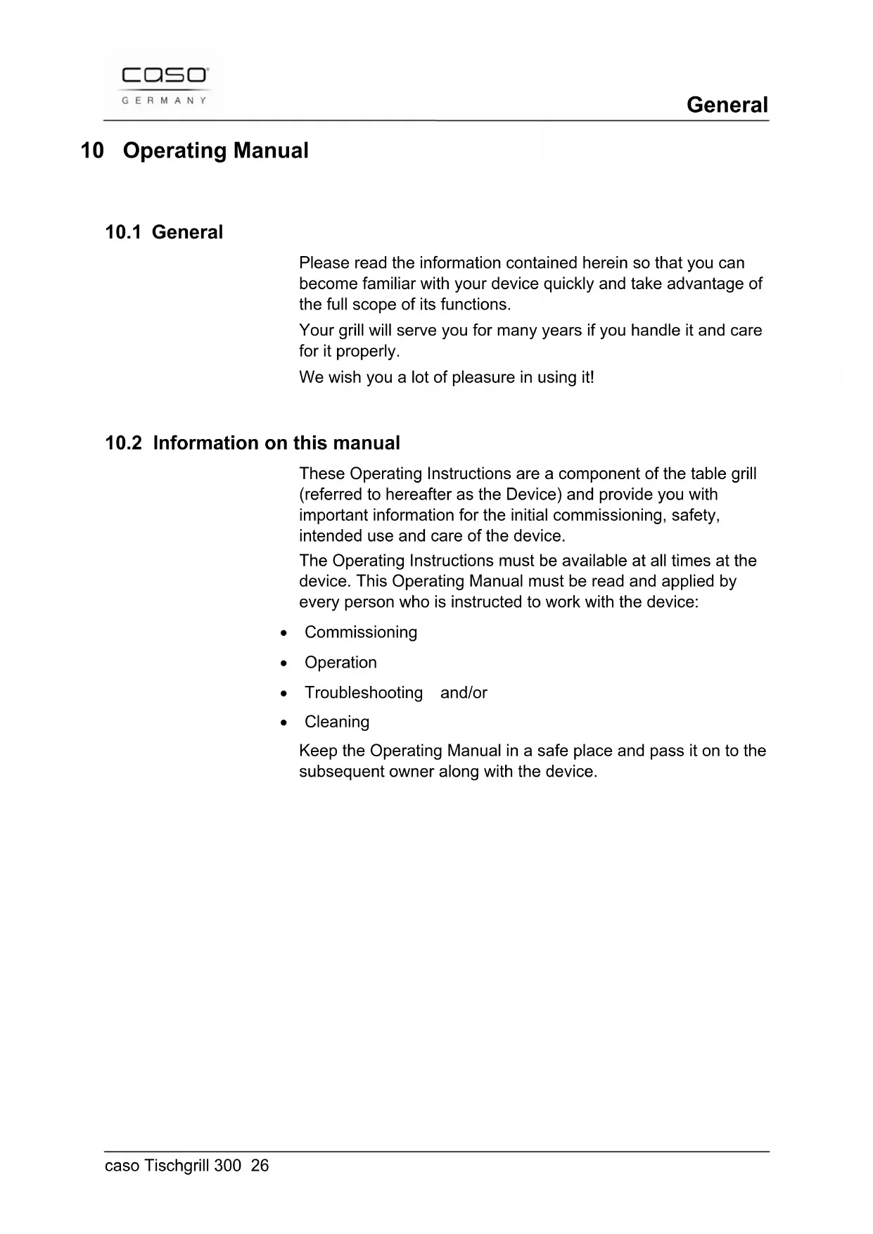 TG 300 - Barbecue CASO - Free user manual and instructions