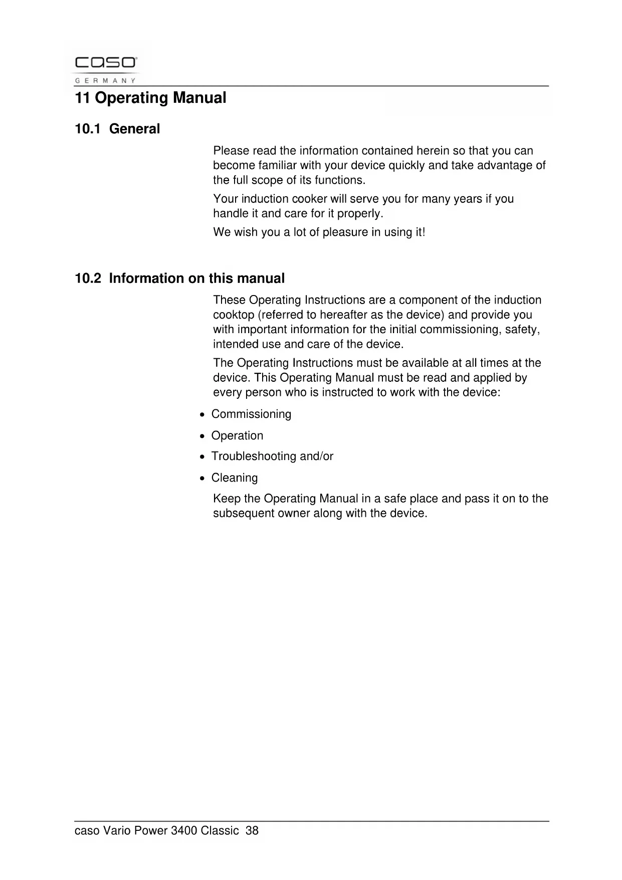 - Cleaning Keep the Operating Manual in a safe place and pass it on to the subsequent owner along with the device.caso Vario Power 3400 Classic 39
