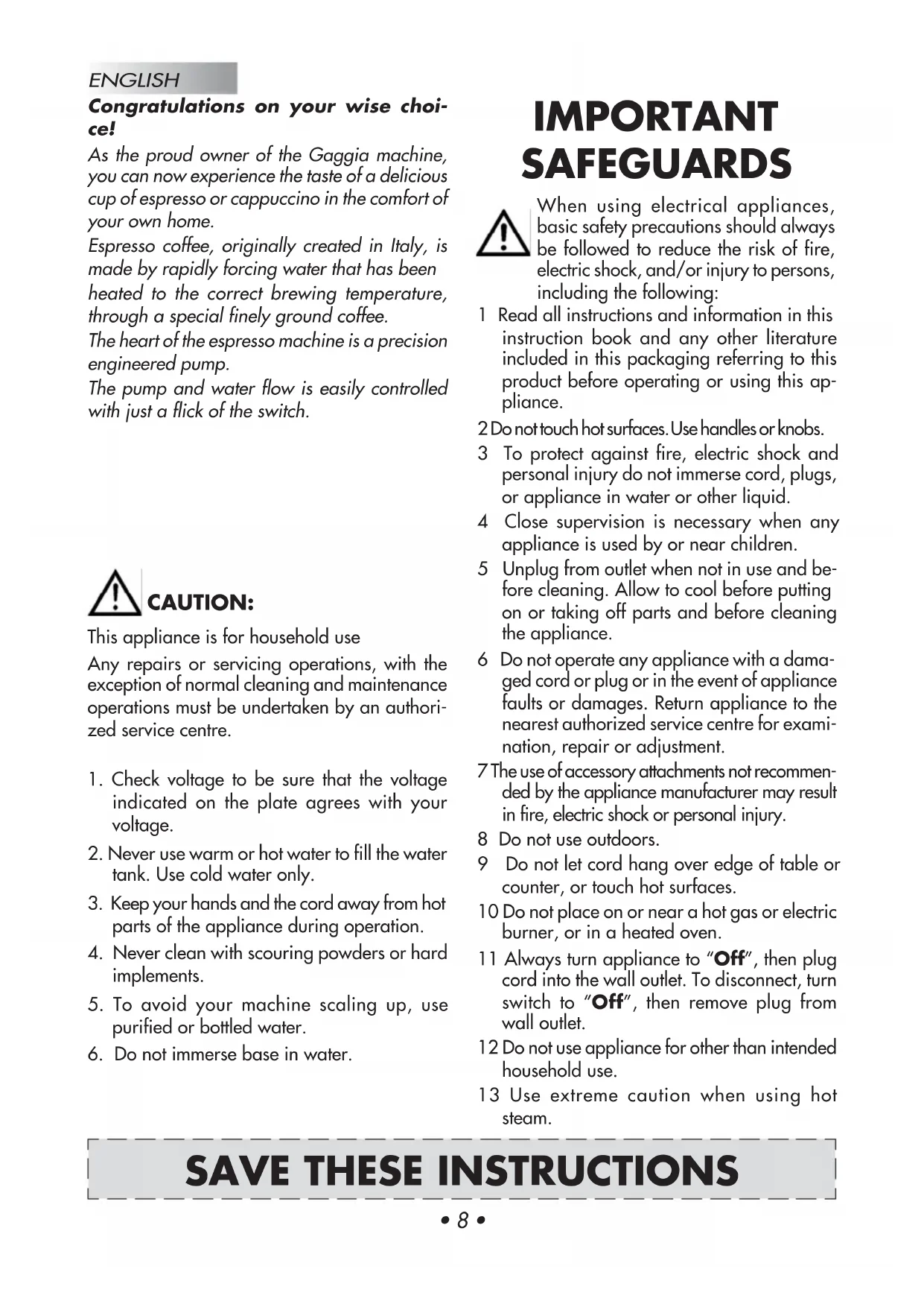 SAVE THESE INSTRUCTIONS IMPORTANT SAFEGUARDS When using electrical appliances,