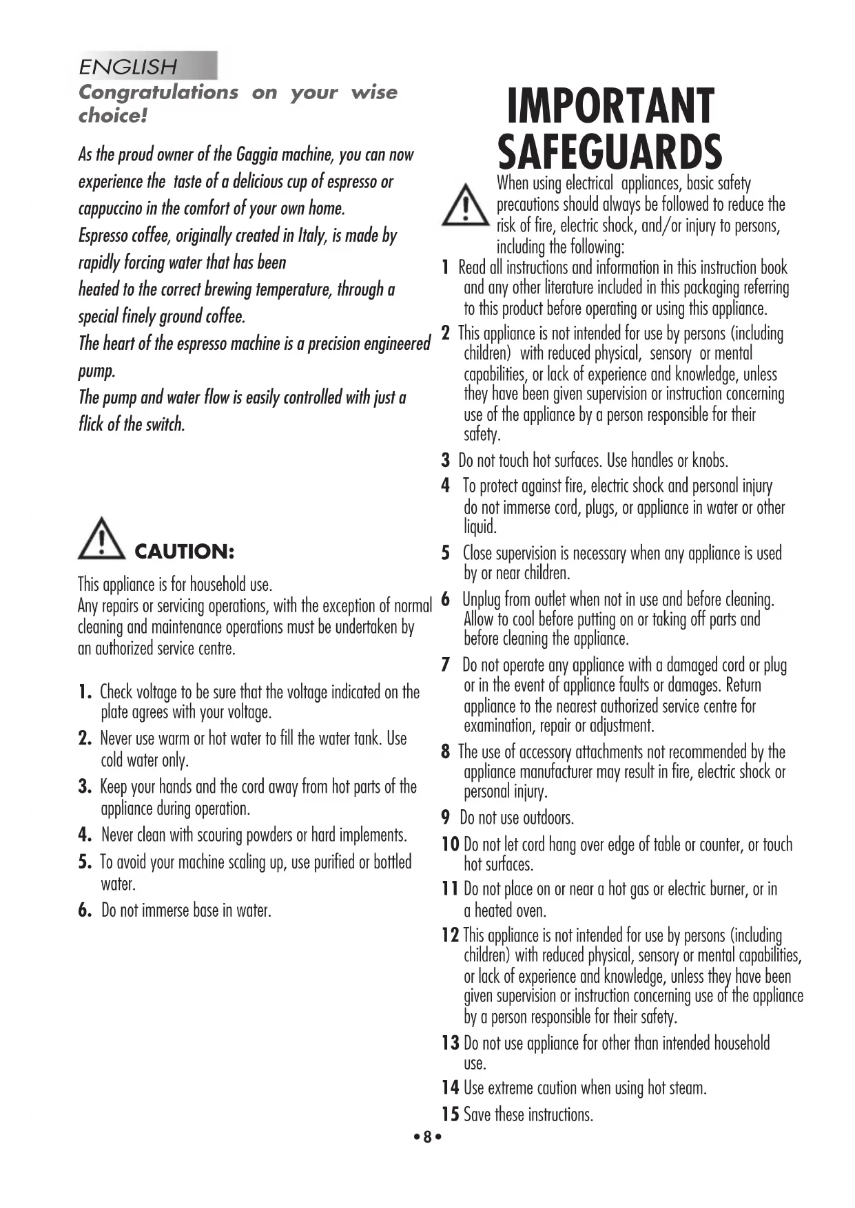 Espresso Dose - Machine à café GAGGIA - Free user manual and instructions