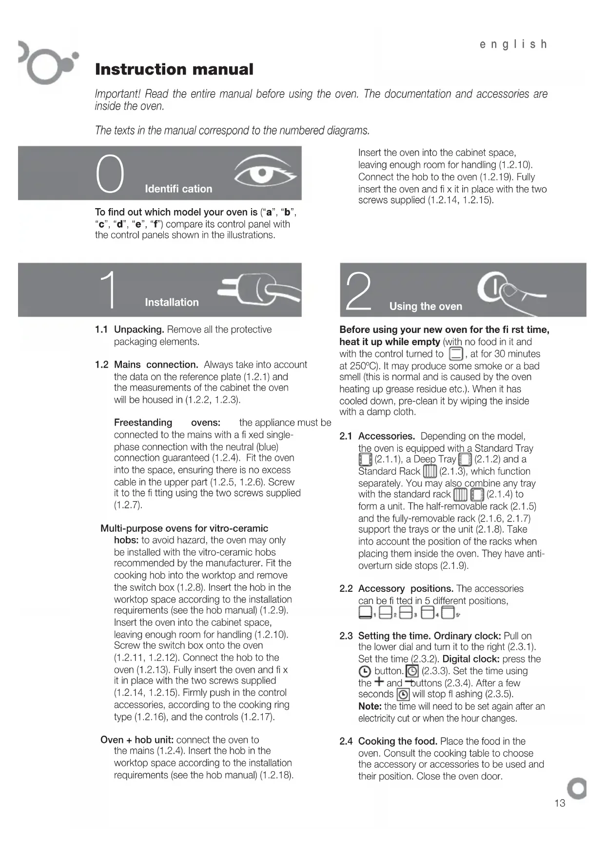 Important! Read the entire manual before using the oven. The documentation and accessories are