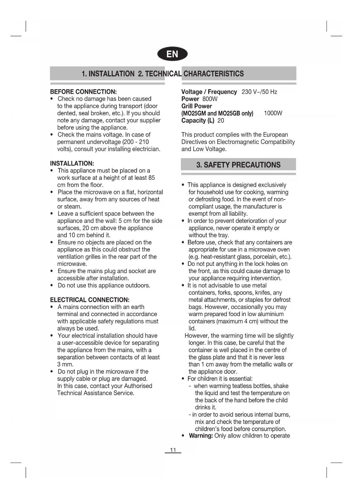 (MO25GM and MO25GB only) 1000W