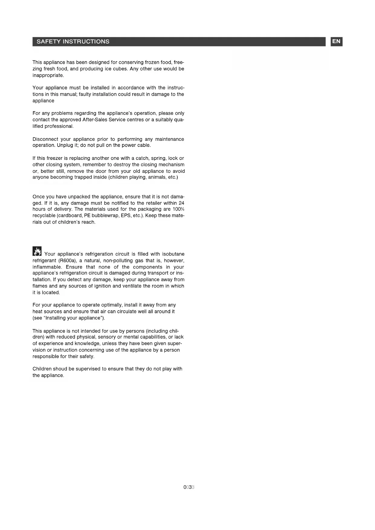 EENNVVIIRROONNMMEENNTTAALL PPRROOTTEECCTTIIOONN This appliance contains no refrigerant gases harmful to the ozone