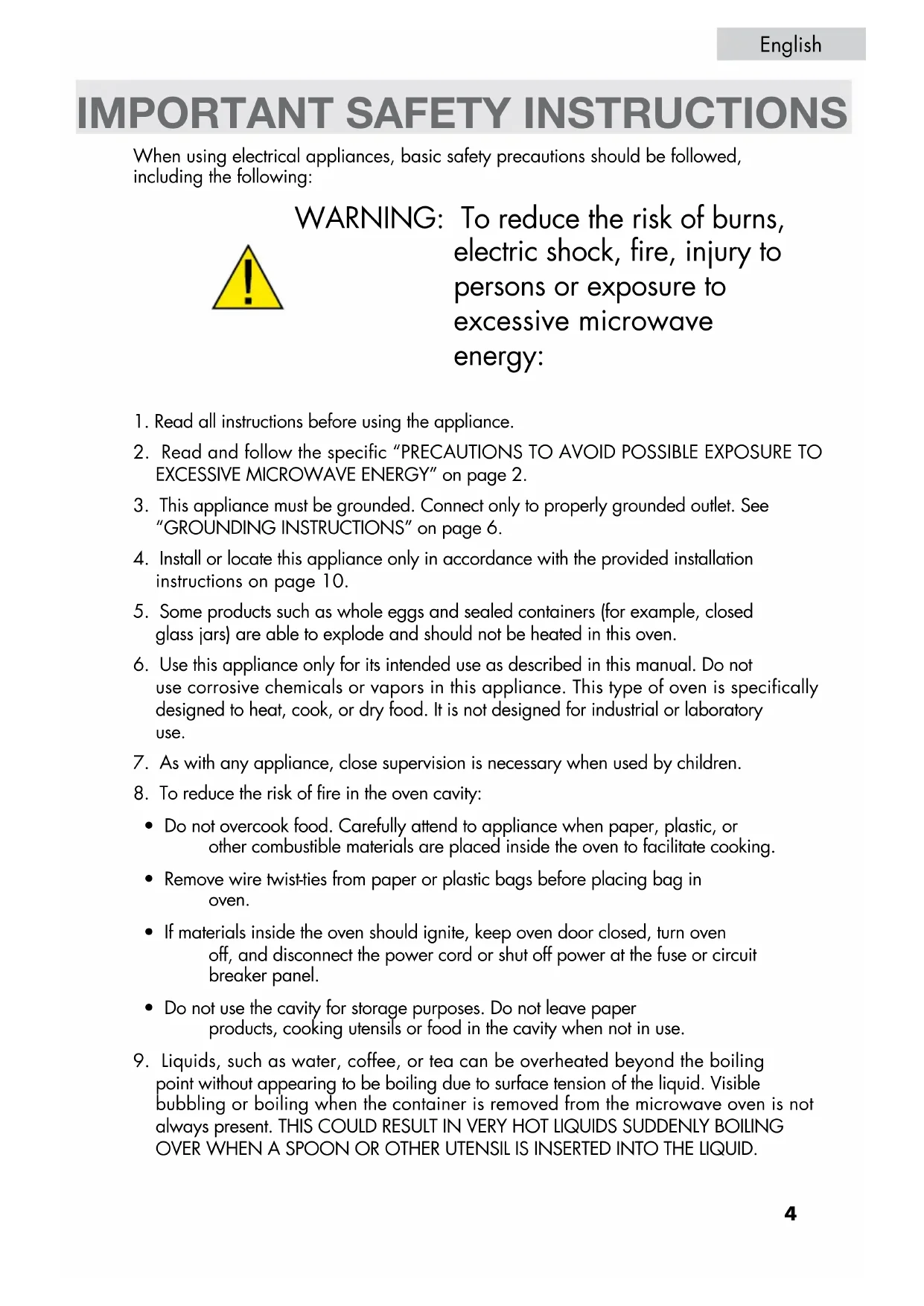 - Do not overcook food. Carefully attend to appliance when paper, plastic, or other combustible materials are placed inside the oven to facilitate cooking.
