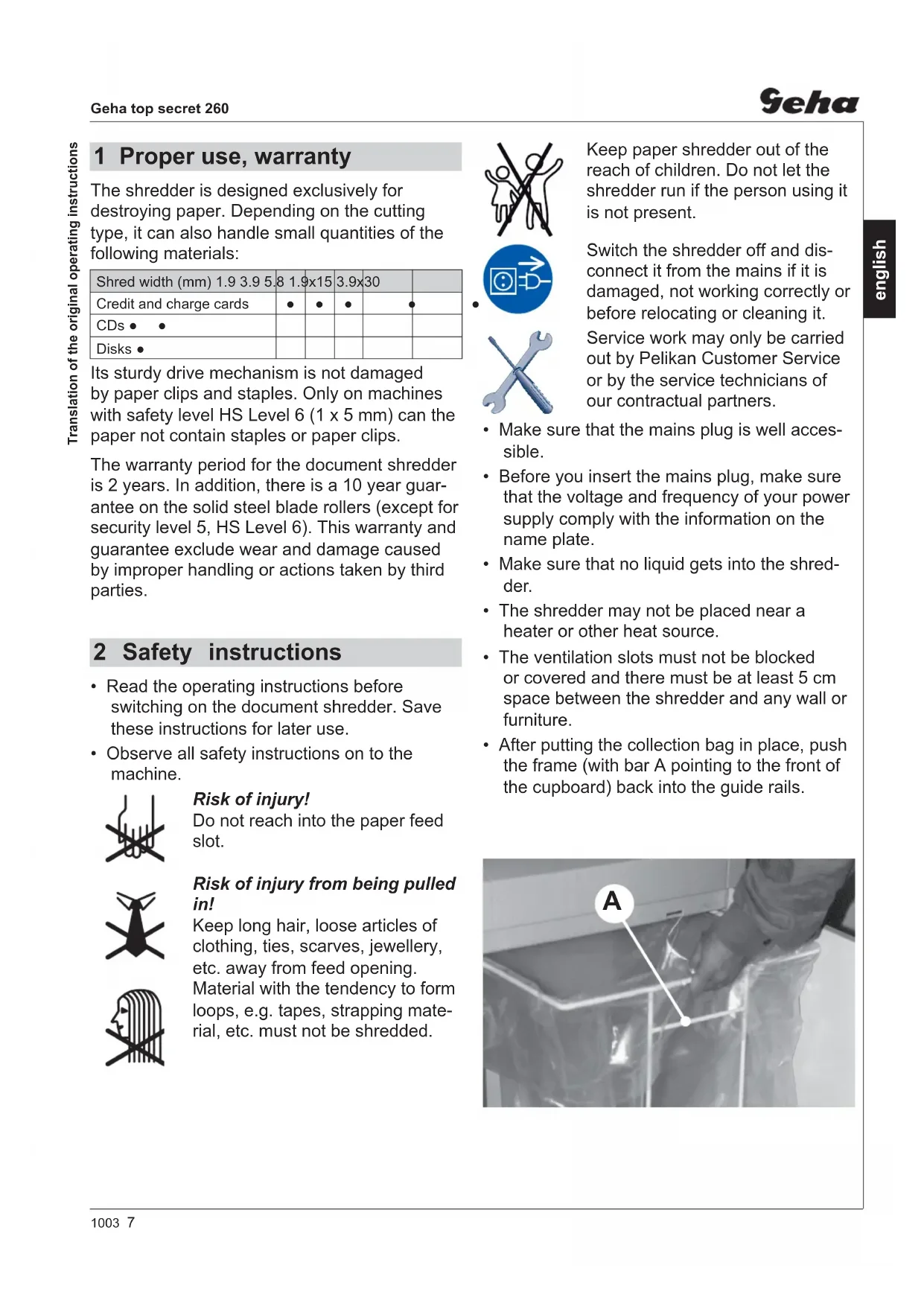 Download the instructions for your Shredder in PDF format for free! Find your manual Top Secret 260 S6 - GEHA and take your electronic device back in hand. On this page are published all the documents necessary for the use of your device. Top Secret 260 S6 by GEHA.