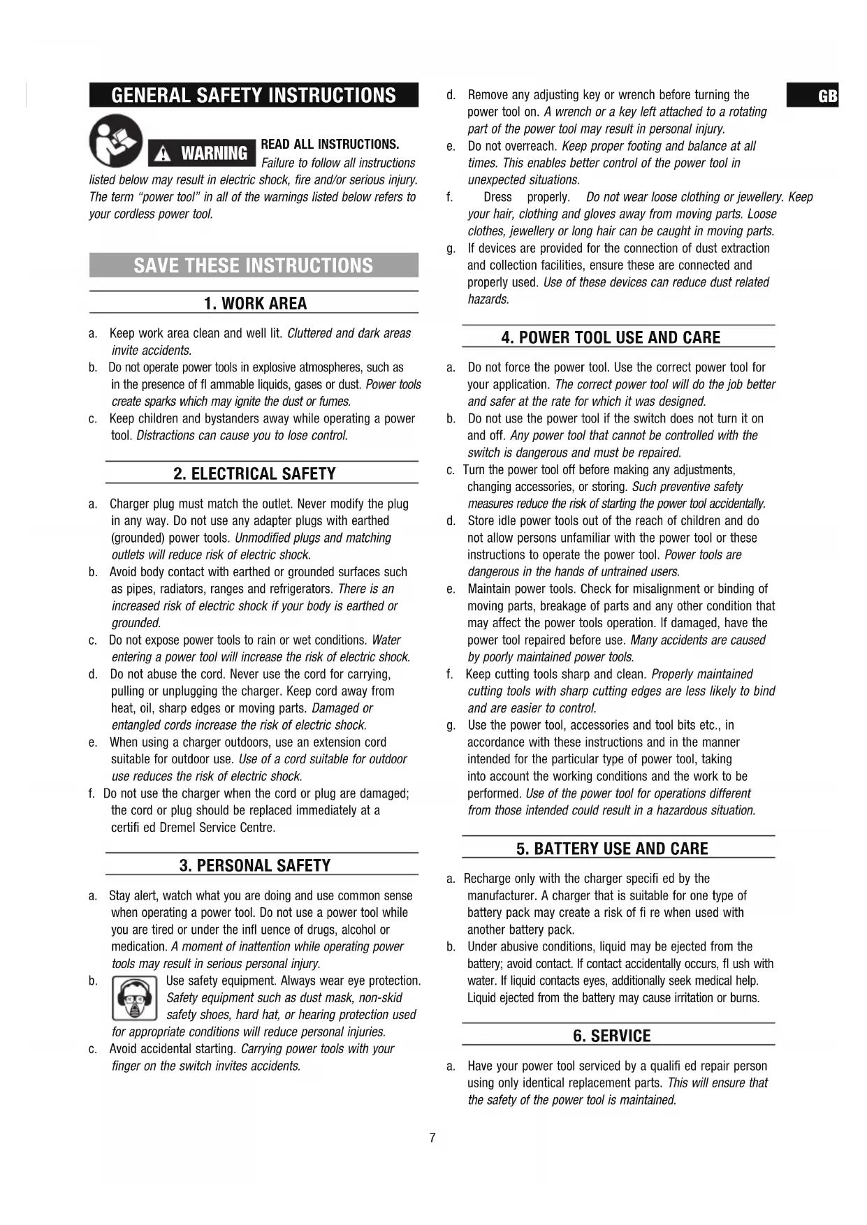 be performed by a Dremel Service Facility. To avoid injury from