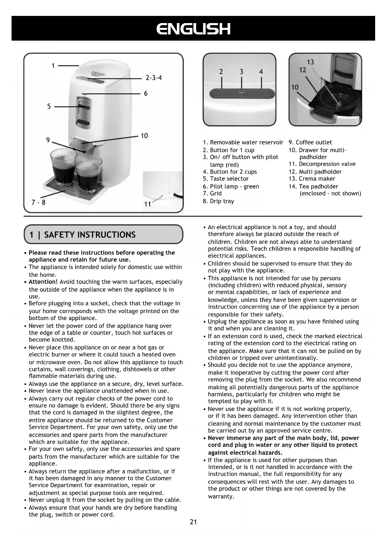 10, the coffee outlet 9, the grid 7 and the drip tray 8