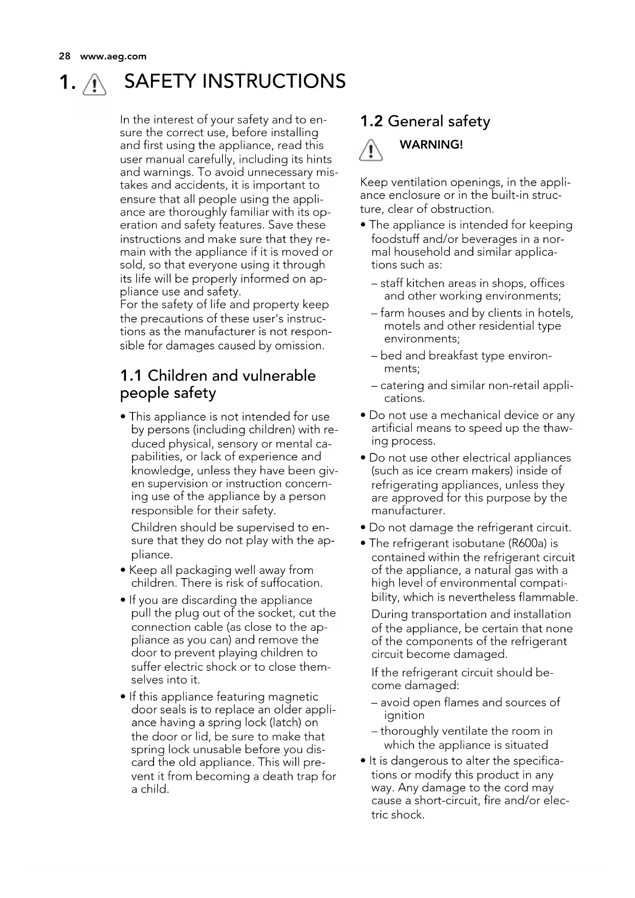 SKS51240S0 - Fridge AEG - Free user manual and instructions