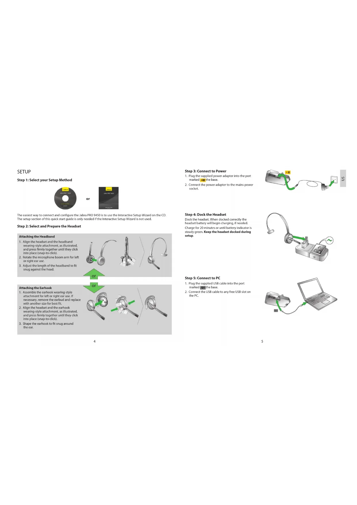 The easiest way to connect and configure the Jabra PRO 9450 is to use the Interactive Setup Wizard on the CD.