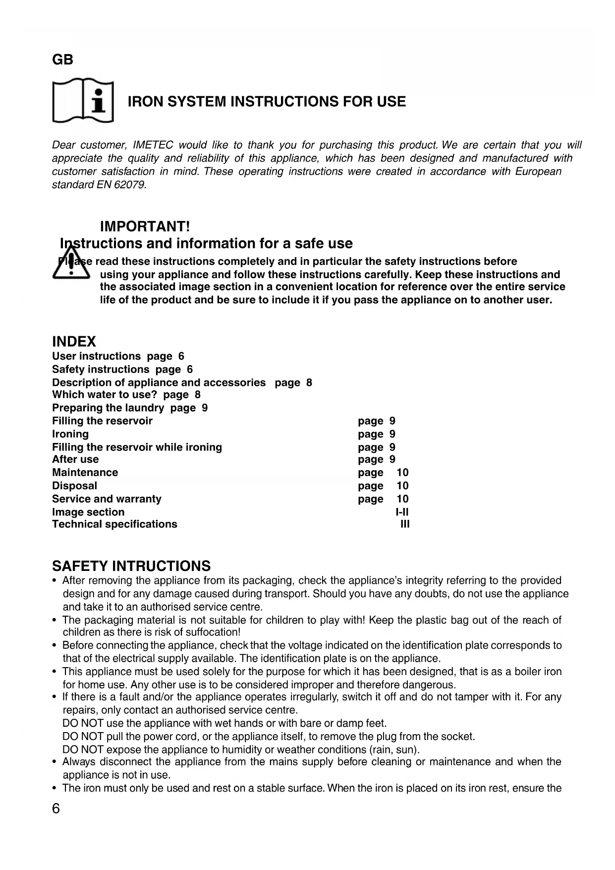 GB IRON SYSTEM INSTRUCTIONS FOR USE Dear customer, IMETEC would like to thank you for purchasing this product. We are certain that you will