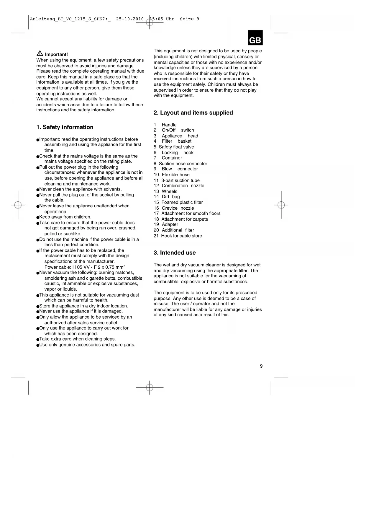 Anleitung_BT_VC_1215_S_SPK7:_ 25.10.2010 15:05 Uhr Seite 9Please note that our equipment has not been