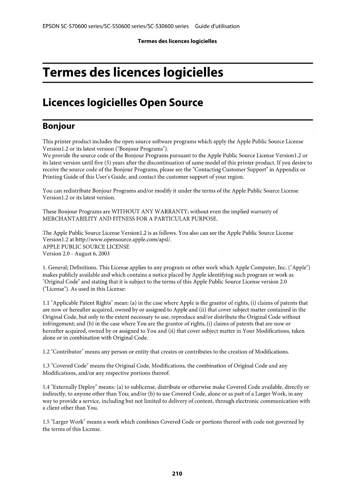 This printer product includes the open source software programs which apply the Apple Public Source License
