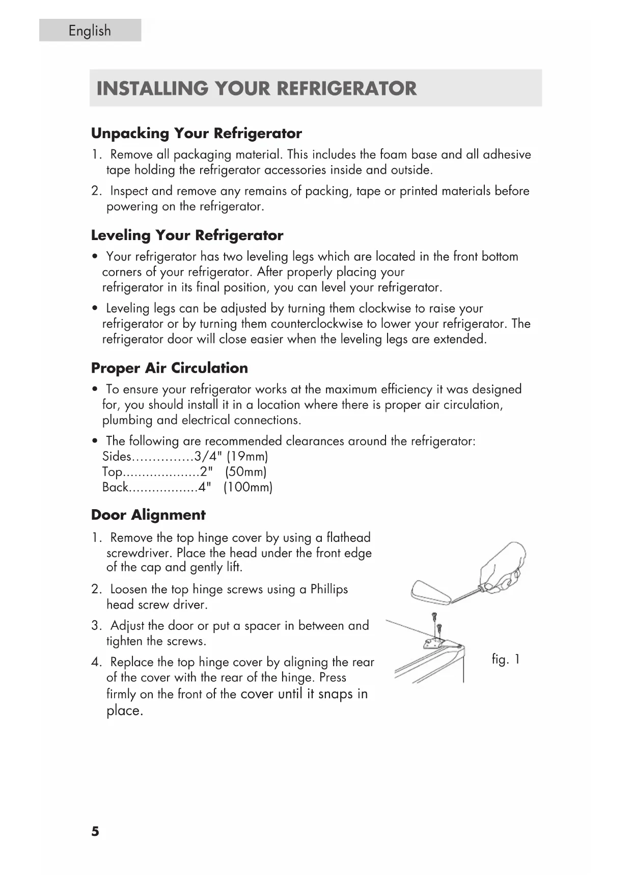 the wall. See the “Installing Your Refrigerator” section.