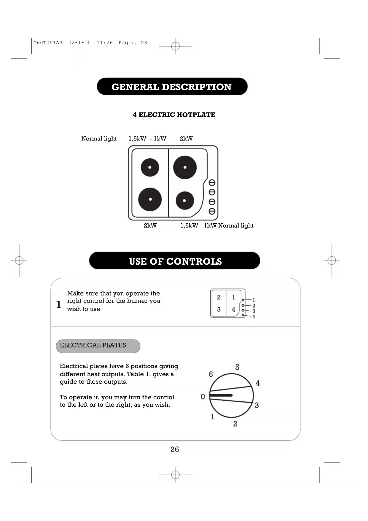 ELECTRICAL PLATES Electrical plates have 6 positions giving