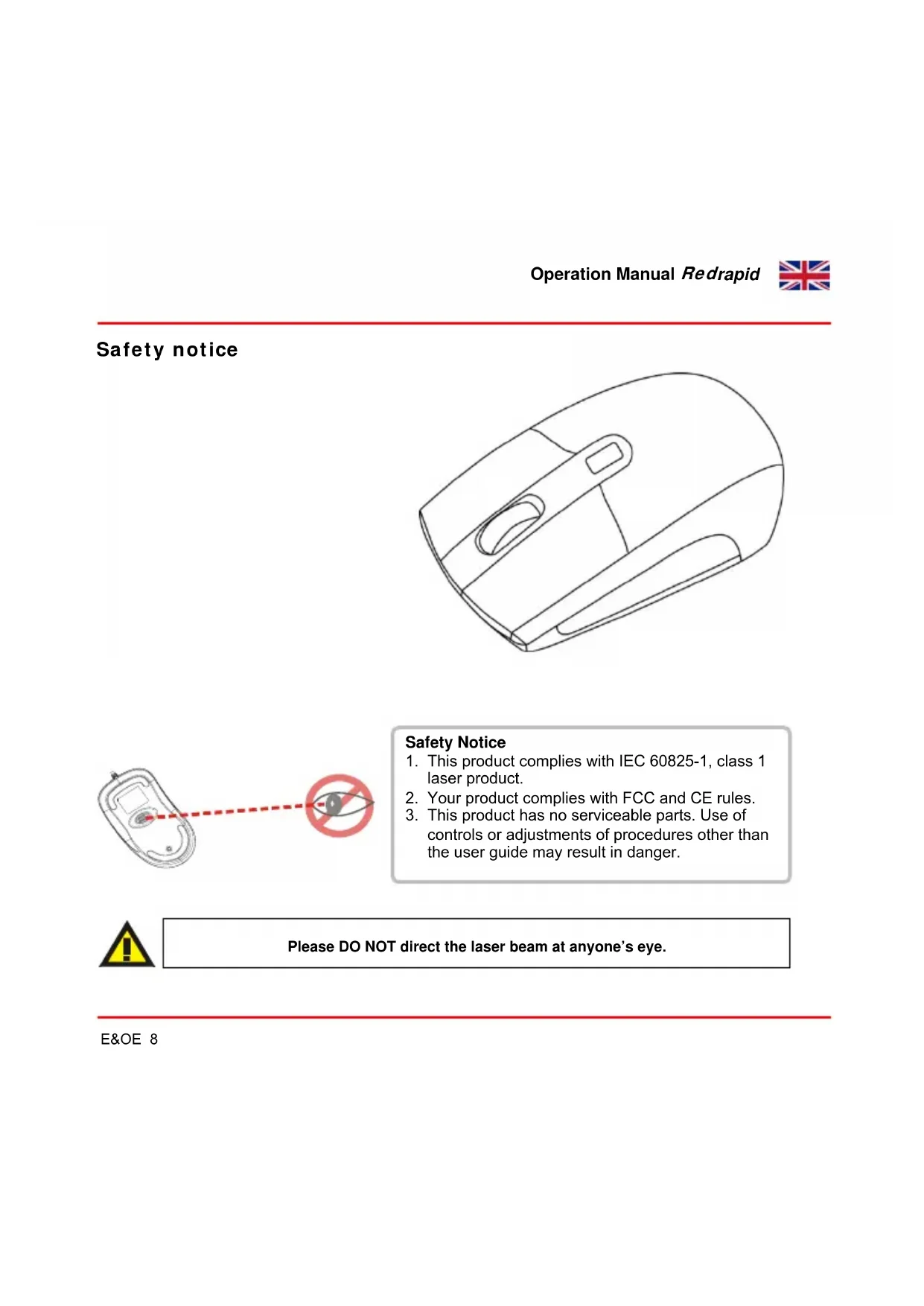 1. This product complies with IEC 60825-1, class 1