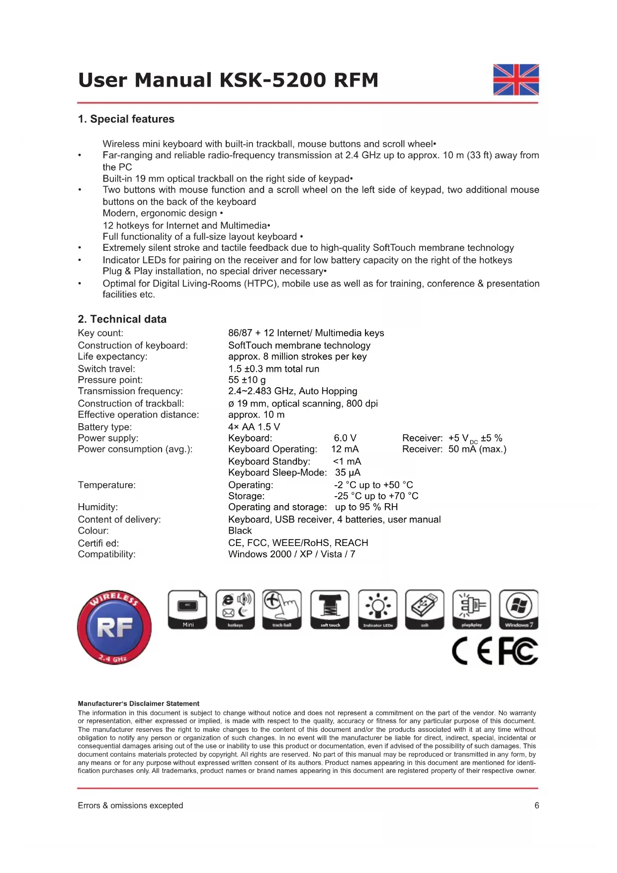 KSK5200 RFM - Keyboard KeySonic - Free user manual and instructions