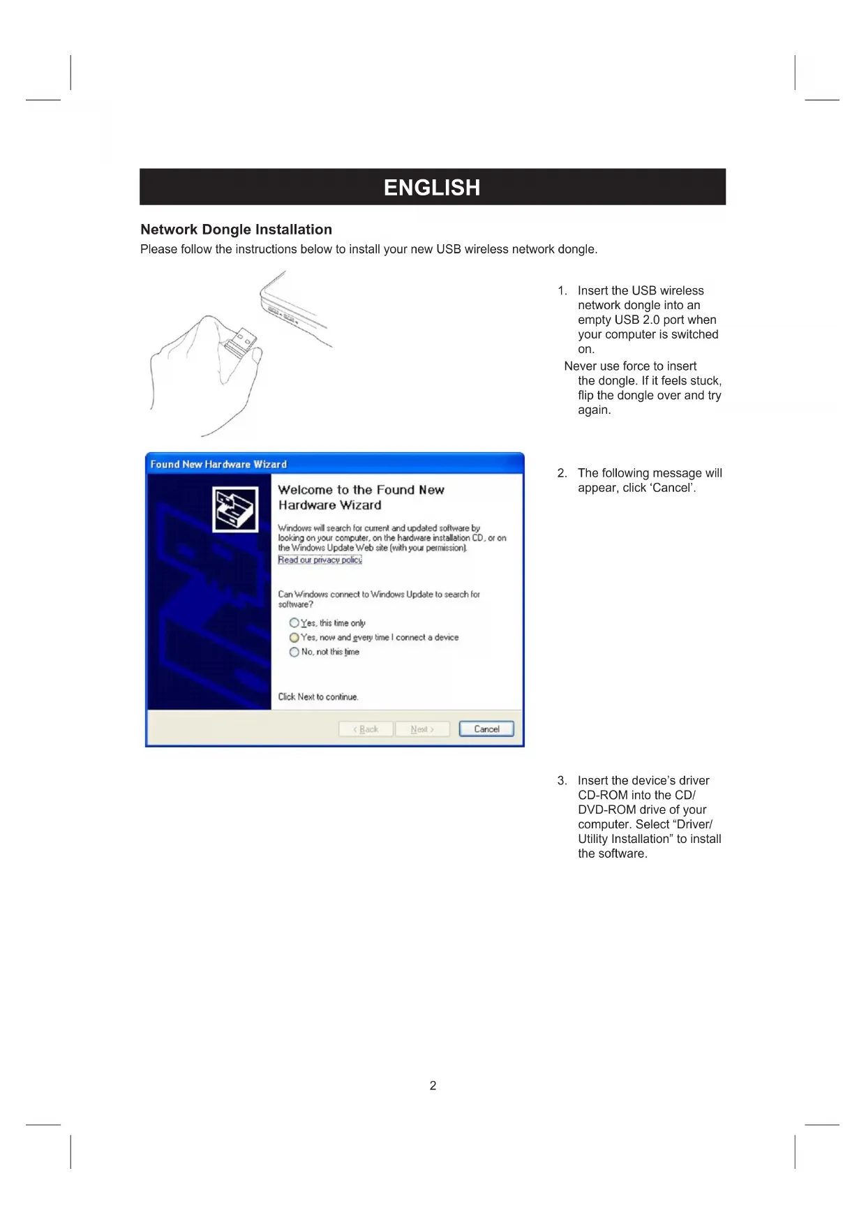 Please follow the instructions below to install your new USB wireless network dongle.