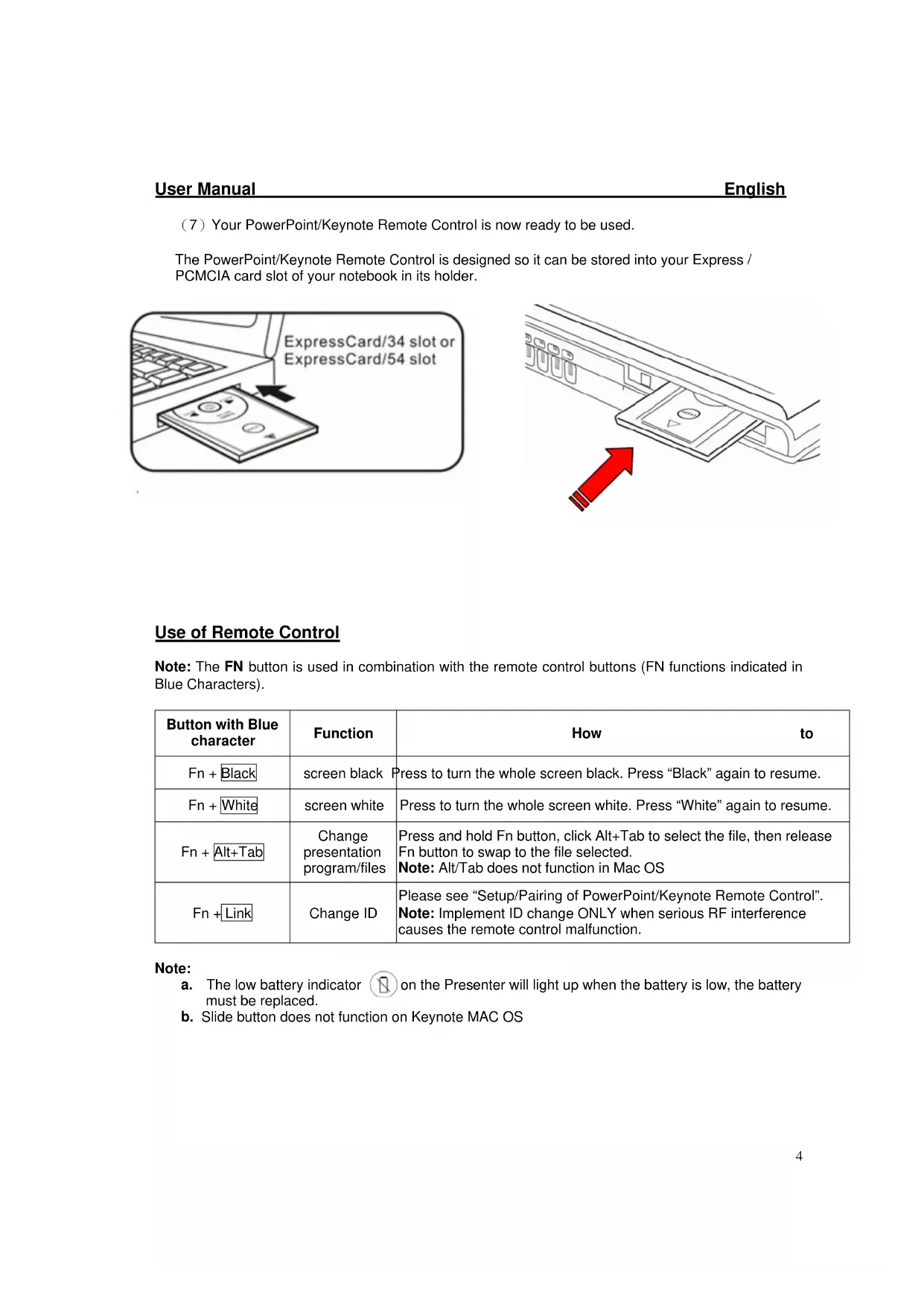 (6)Select 'ISO (European)' and click 'Done'.4 User Manual English (7)Your PowerPoint/Keynote Remote Control is now ready to be used. The PowerPoint/Keynote Remote Control is designed so it can be stored into your Express / PCMCIA card slot of your notebook in its holder.