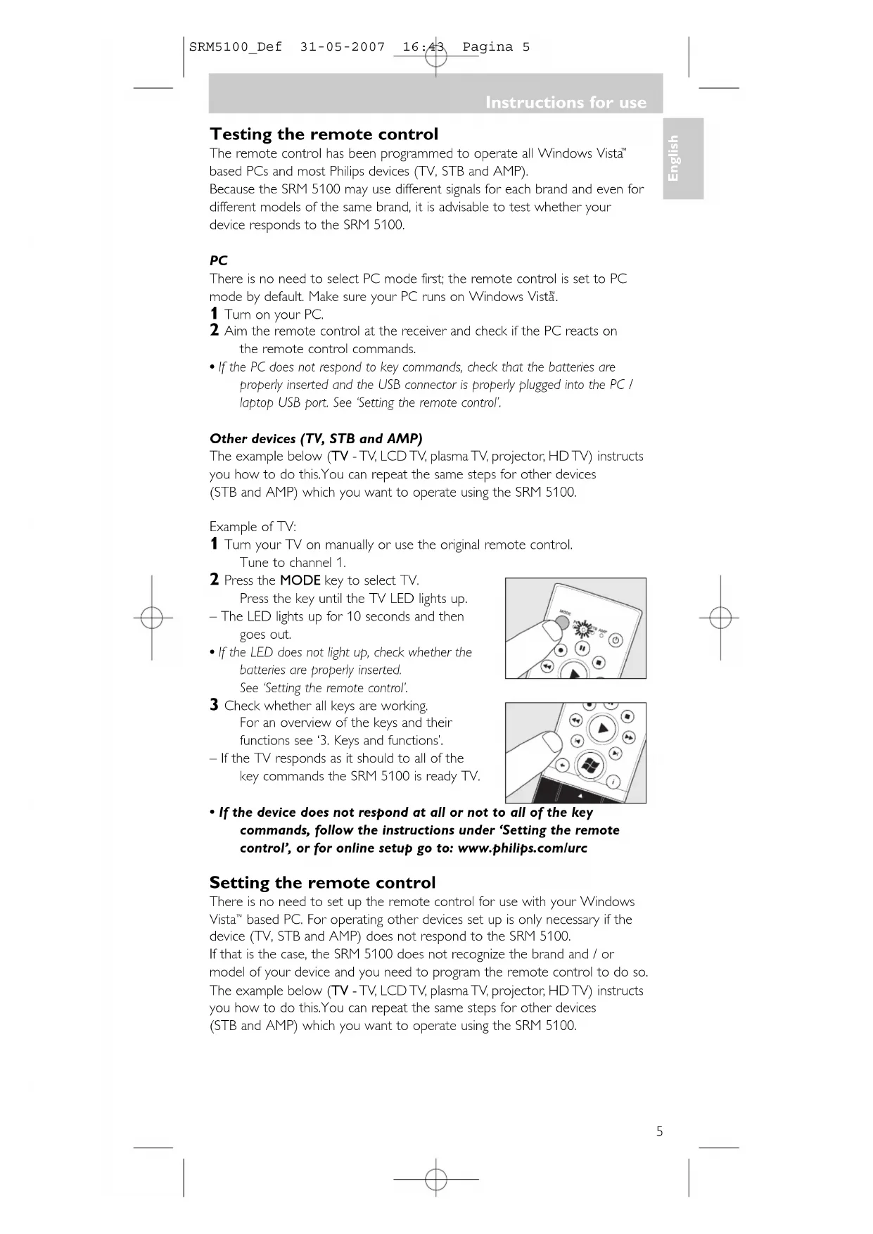 SRM5100_Def 31-05-2007 16:43 Pagina 5Note:The third mode (STB) can be used either for operating your Set Top Box,