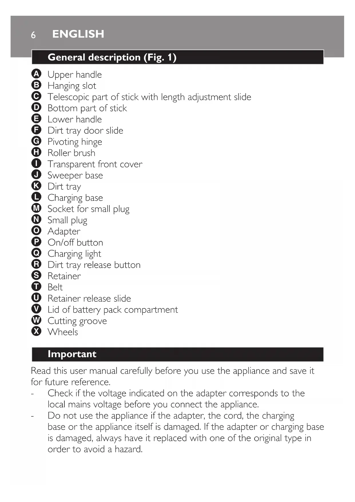 English 72 Connect the telescopic part of the stick to the bottom part of the
