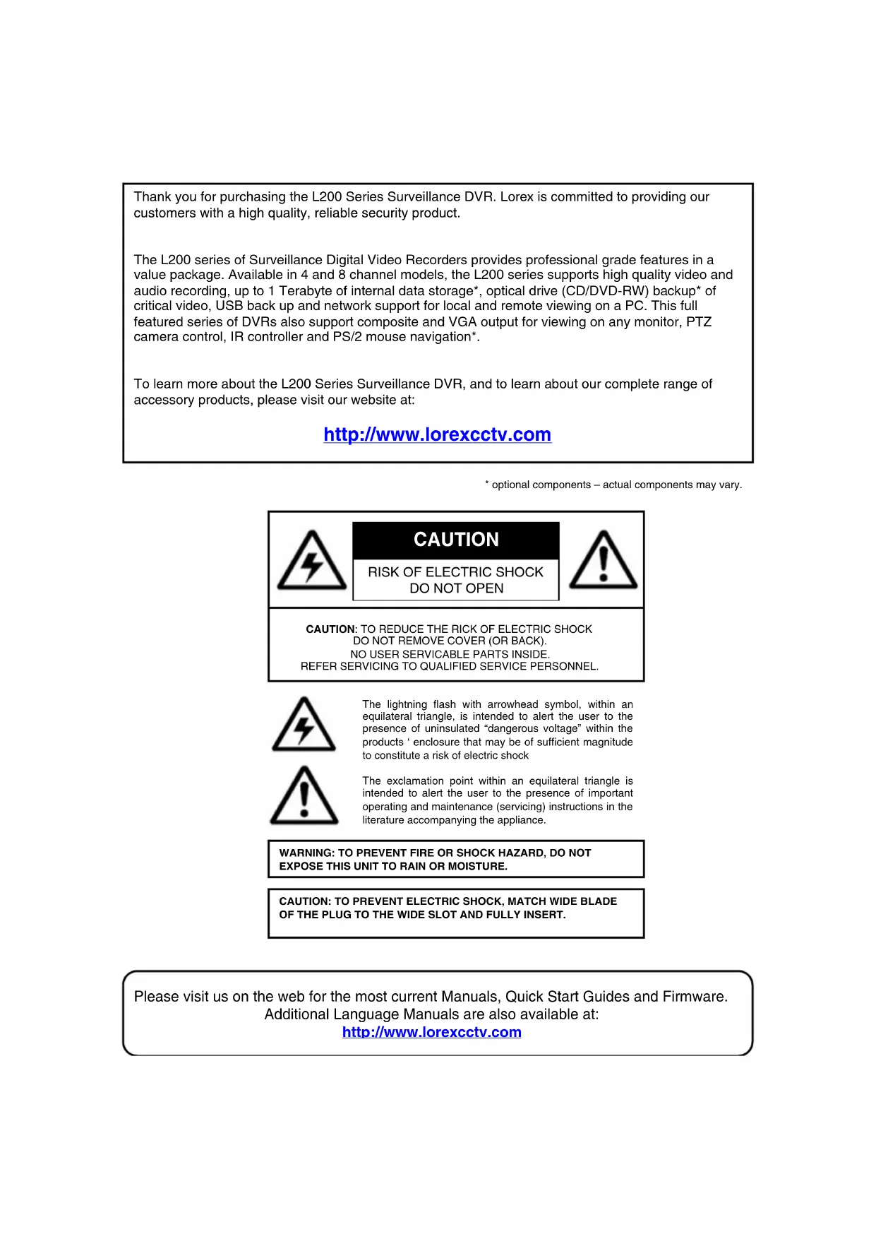 Thank you for purchasing the L200 Series Surveillance DVR. Lorex is committed to providing our customers with a high quality, reliable security product.