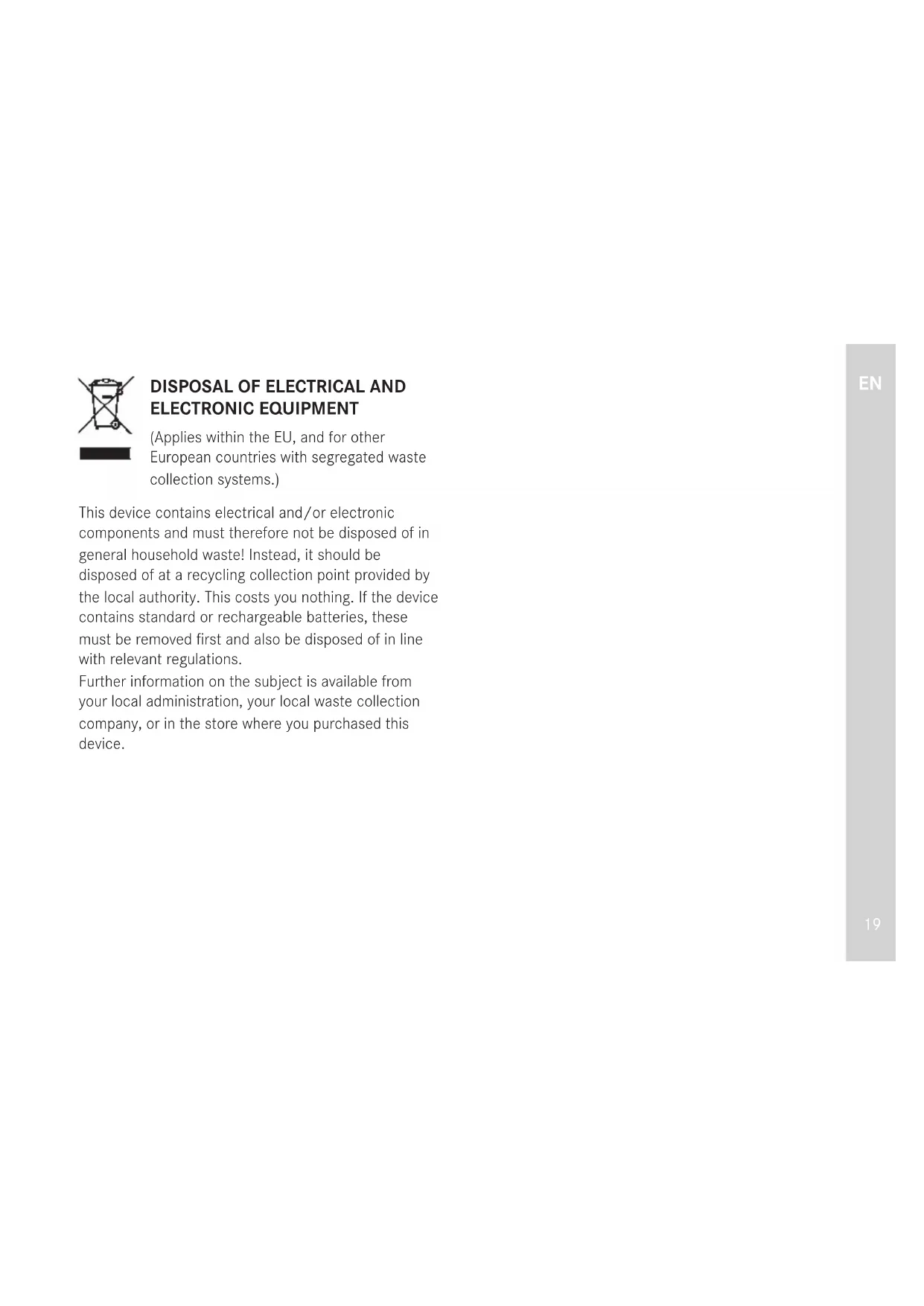 18DISPOSAL OF ELECTRICAL AND ELECTRONIC EQUIPMENT