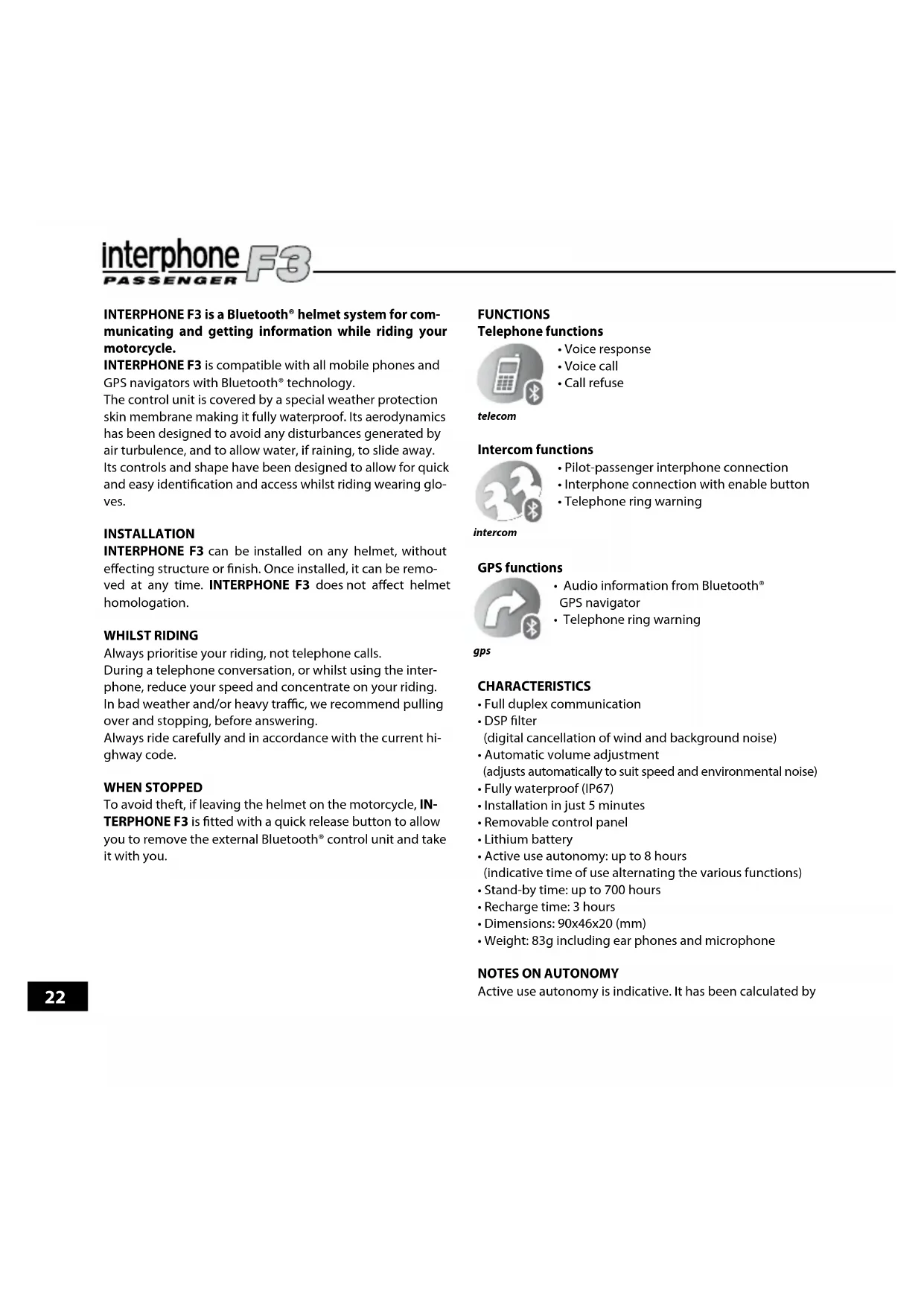 alternating the use of all the INTERPHONE F3 functions and, given the varied use of these; it can vary significantly from one use to another.
