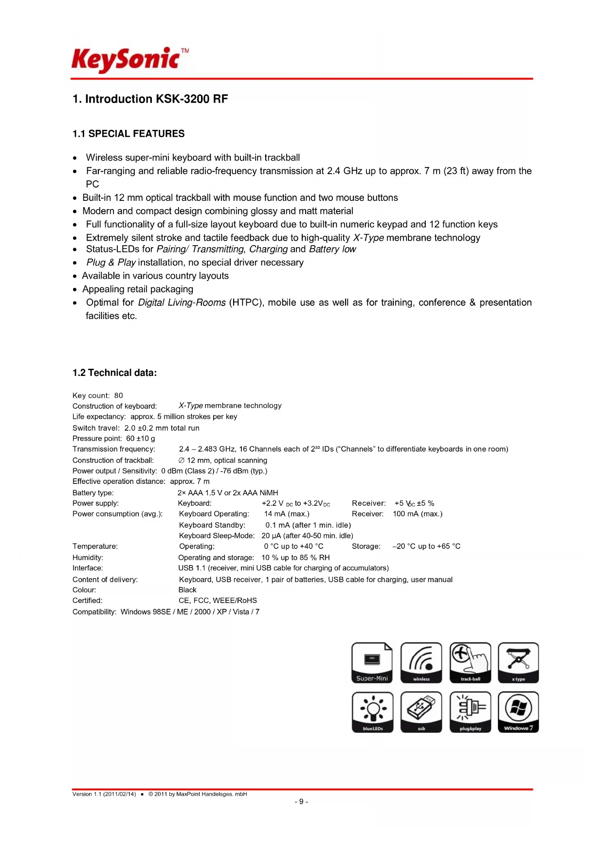 Find the device manual for free KSK3200 RF KeySonic in PDF.