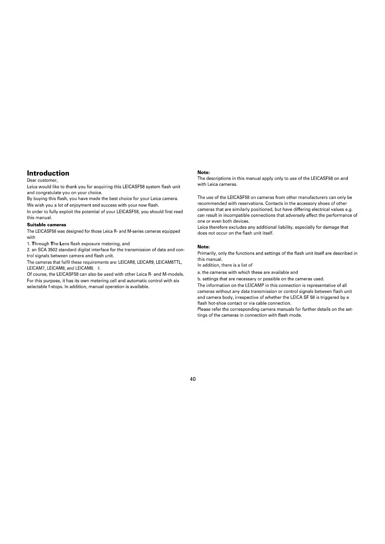 Leica would like to thank you for acquiring this LEICASF58 system flash unit