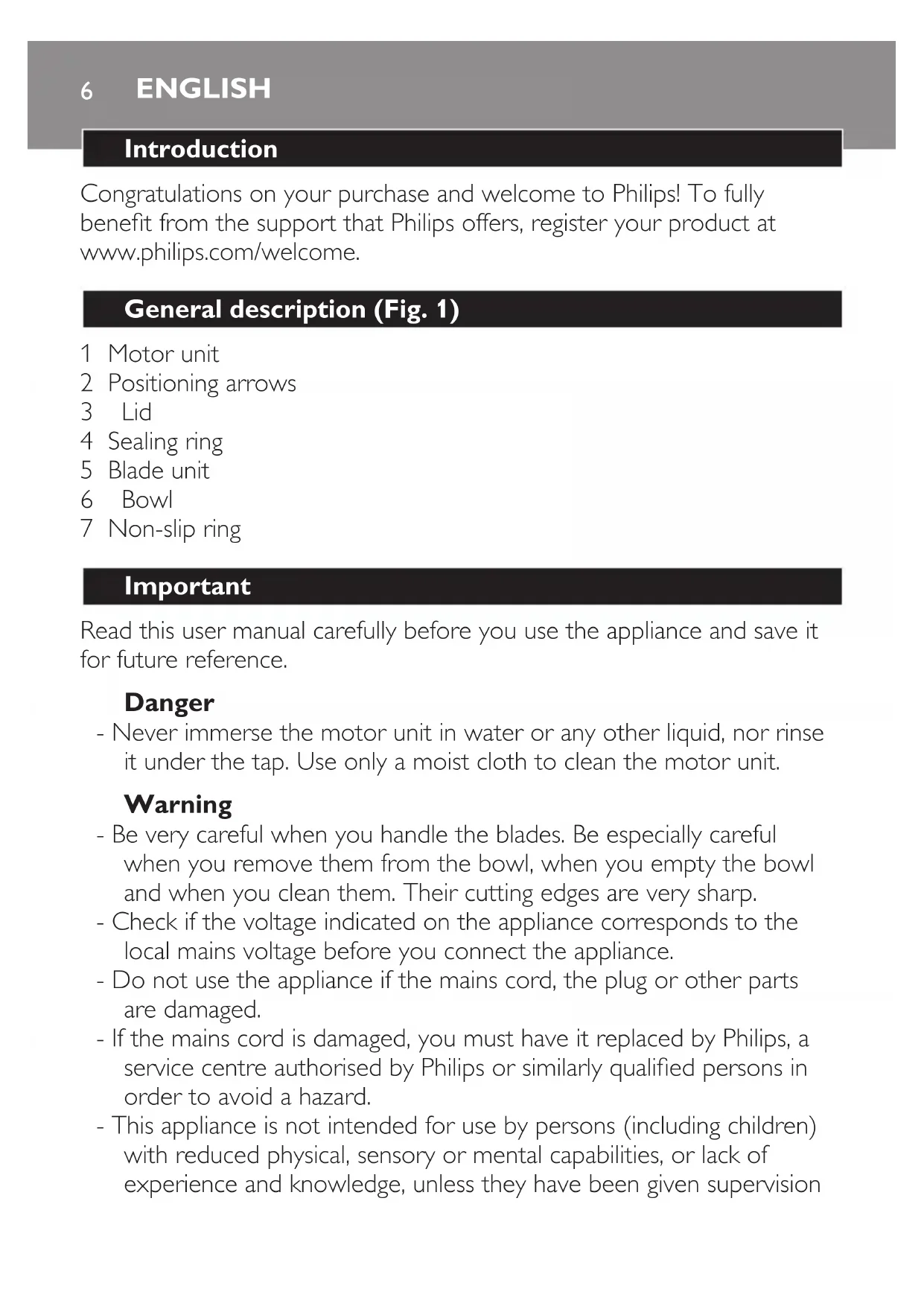 - If the mains cord is damaged, you must have it replaced by Philips, a