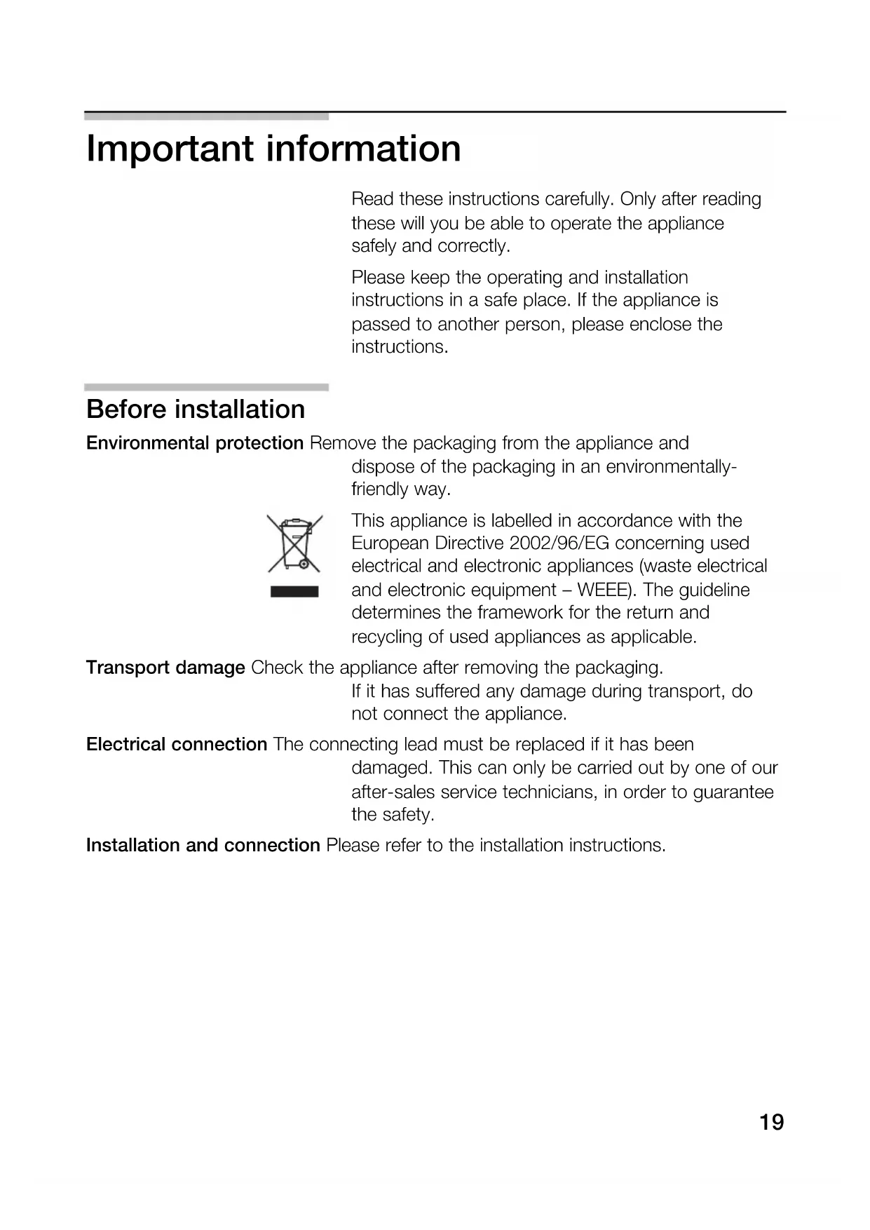 Hot appliance Caution, risk of burns! The appliance heats up during