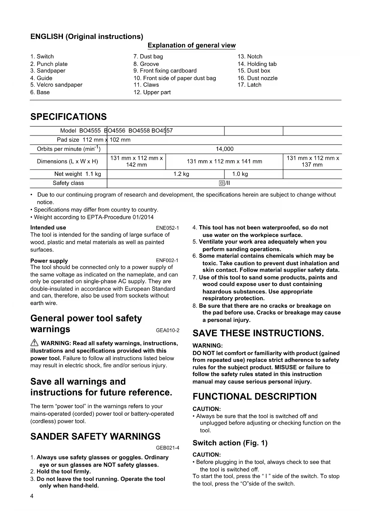 SANDER SAFETY WARNINGS GEB021-4