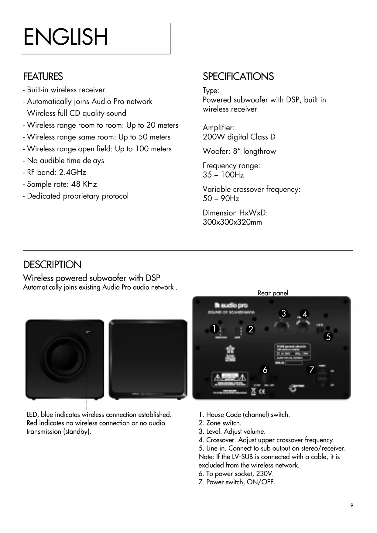 Download the instructions for your Subwoofer in PDF format for free! Find your manual LV Sub - AUDIO PRO and take your electronic device back in hand. On this page are published all the documents necessary for the use of your device. LV Sub by AUDIO PRO.