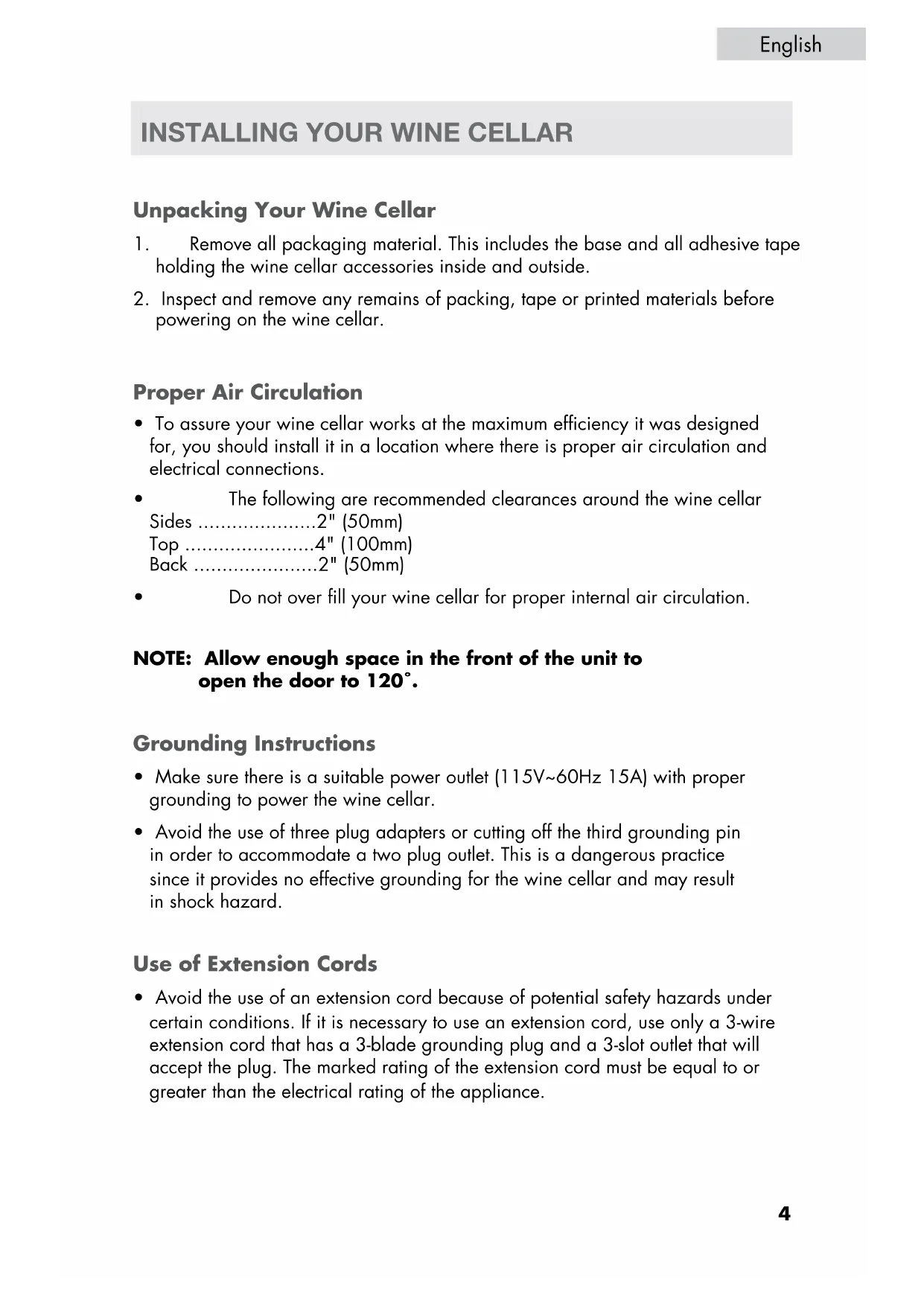 7. This wine cellar should not be recessed or built-in an enclosed cabinet.