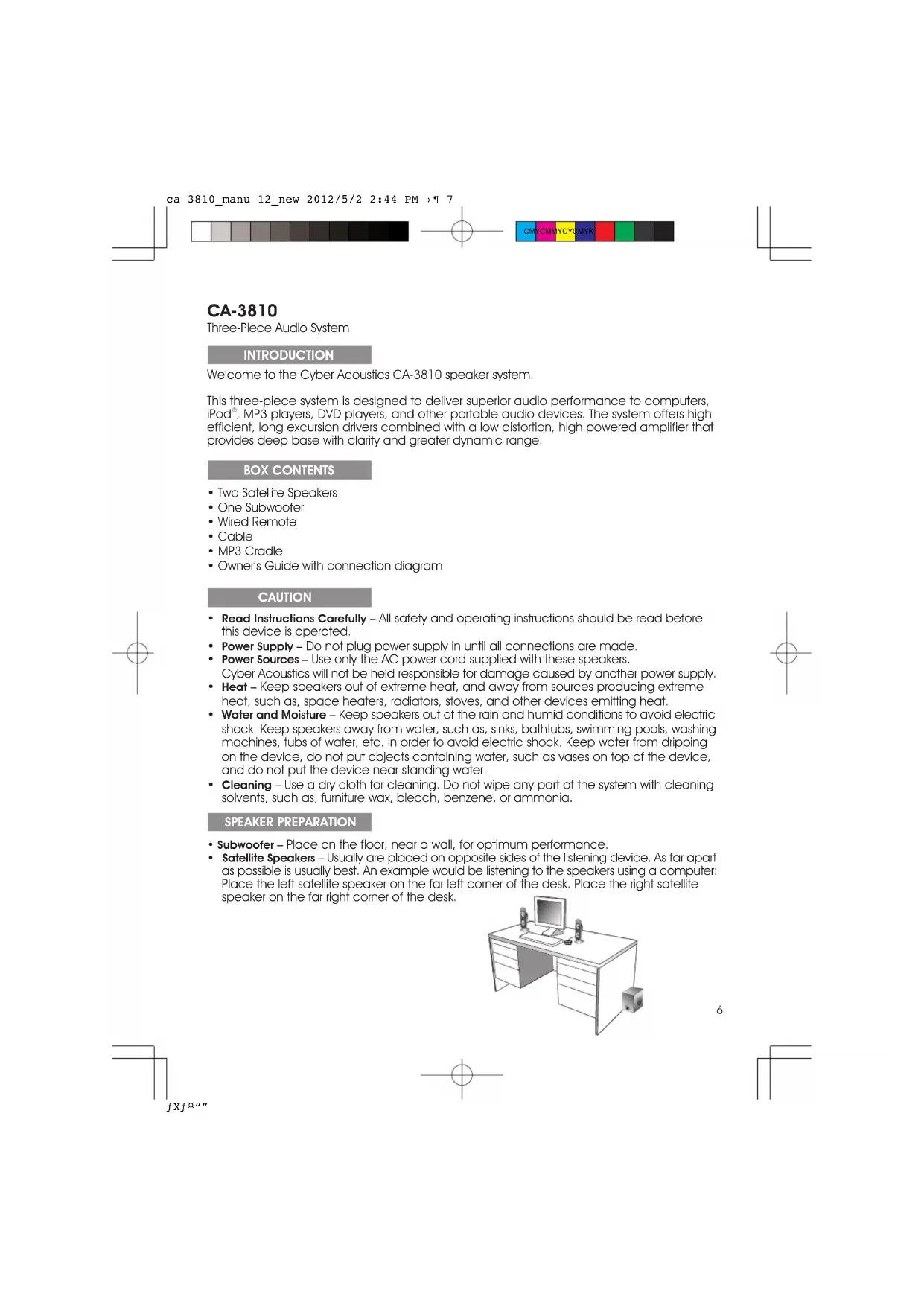 Download the instructions for your Speaker in PDF format for free! Find your manual CA3810 - Cyber Acoustics and take your electronic device back in hand. On this page are published all the documents necessary for the use of your device. CA3810 by Cyber Acoustics.