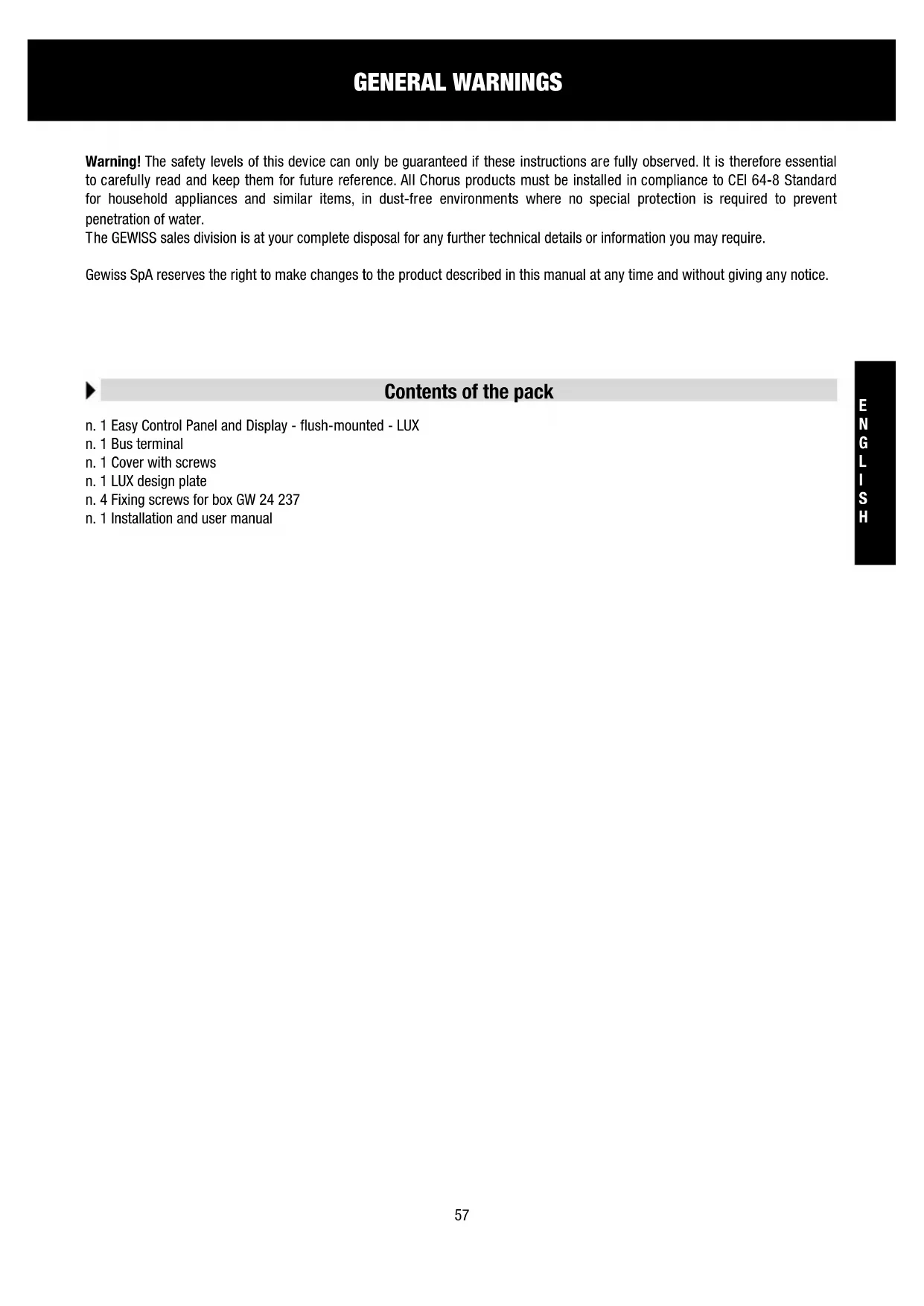 GEWISS S.p.A Via A. Volta, 1 - 24069 Cenate Sotto (BG) Italy Tel: +39 035 946 111 Fax: +39 035 945 270 E-mail: qualitymarks@gewiss.com