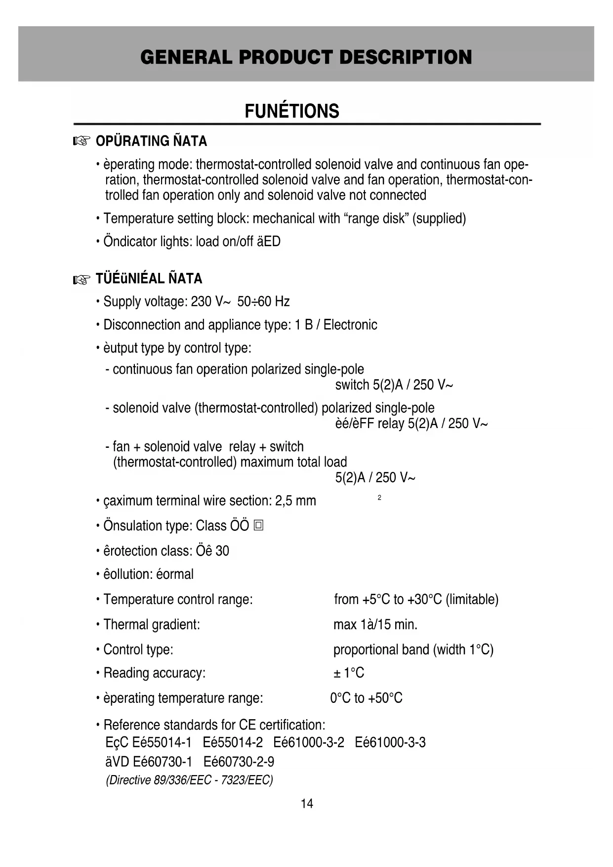 - Operating mode: thermostat-controlled solenoid valve and continuous fan ope- ration, thermostat-controlled solenoid valve and fan operation, thermostat-con- trolled fan operation only and solenoid valve not connected