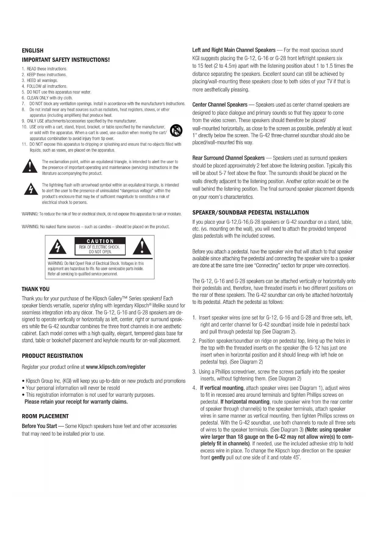THANK YOU Thank you for your purchase of the Klipsch Gallery™ Series speakers! Each
