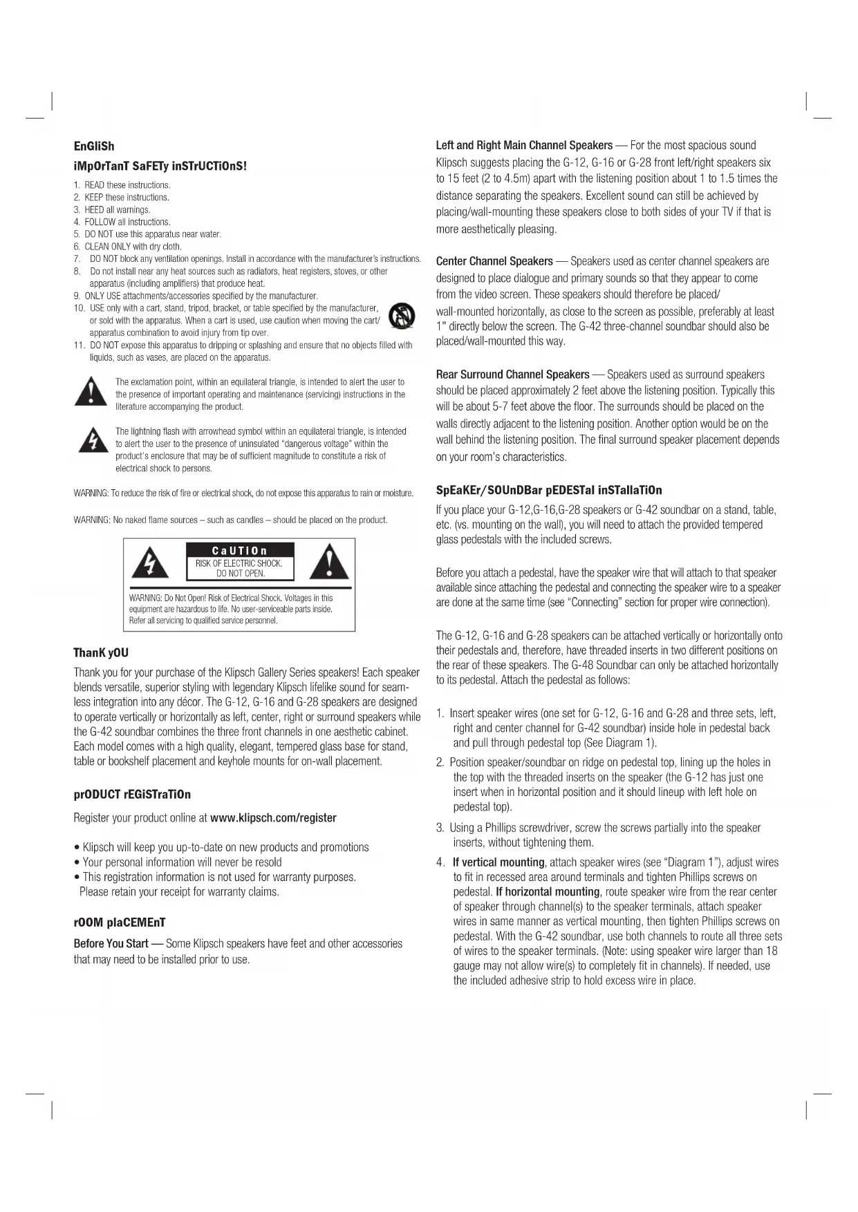 thanK yOU Thank you for your purchase of the Klipsch Gallery Series speakers! Each speaker