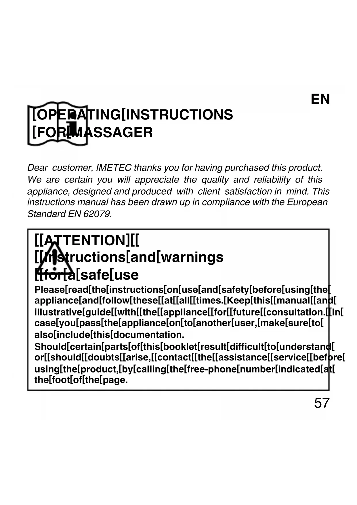 EN OPERATING INSTRUCTIONS FOR MASSAGER Dear customer, IMETEC thanks you for having purchased this product.