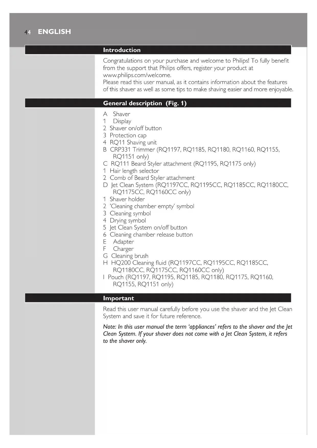 Read this user manual carefully before you use the shaver and the Jet Clean