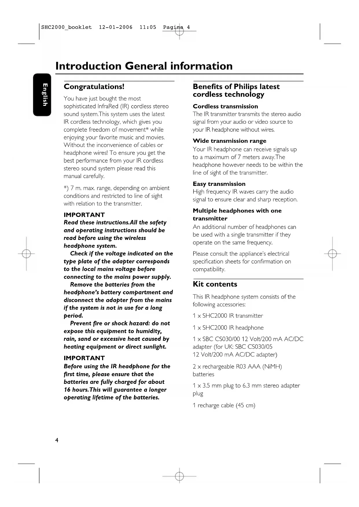 SHC2000_booklet 12-01-2006 11:05 Pagina 8Maintenance – If the headphone will not be used for a longer time,