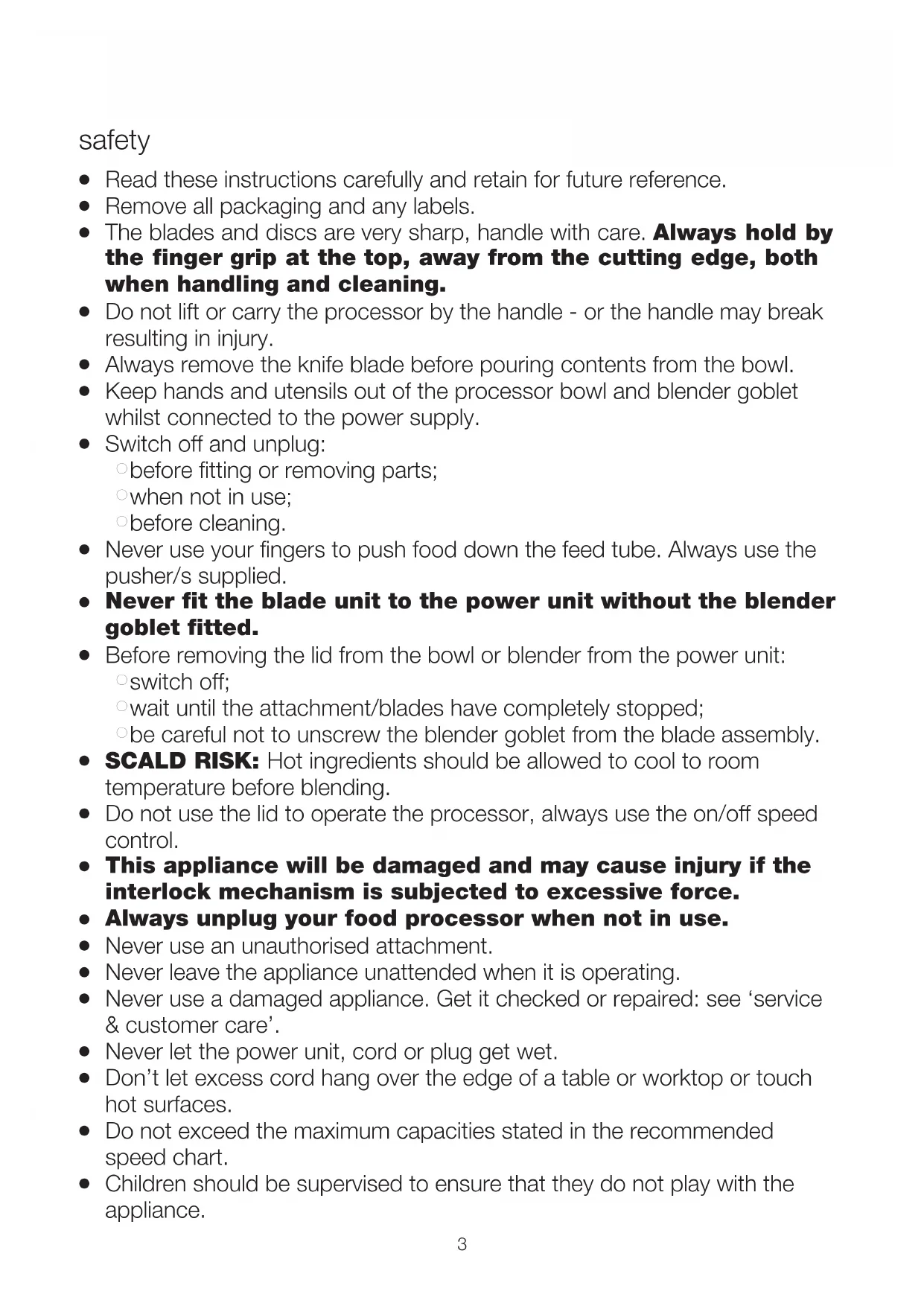 G Keep hands and utensils out of the processor bowl and blender goblet
