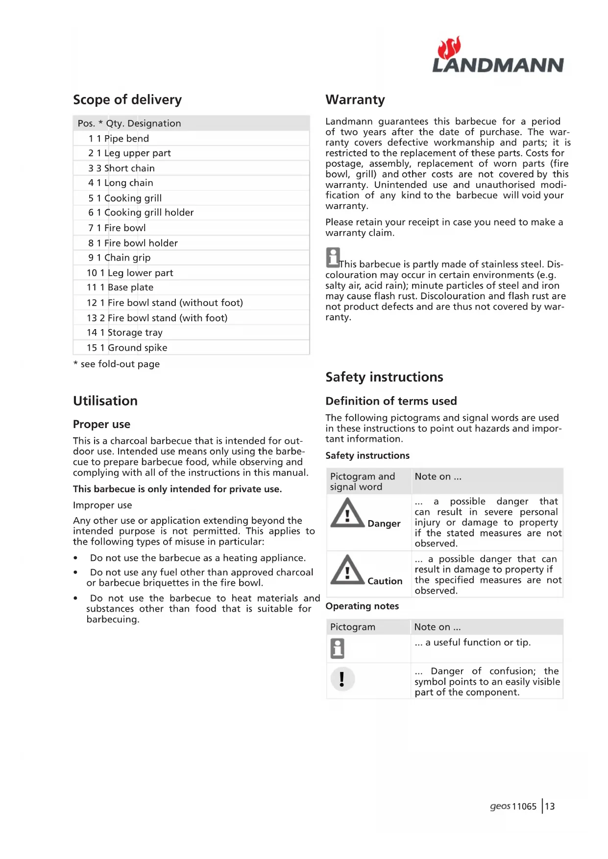 Download the instructions for your Barbecue in PDF format for free! Find your manual Geos 11065 - LANDMANN and take your electronic device back in hand. On this page are published all the documents necessary for the use of your device. Geos 11065 by LANDMANN.