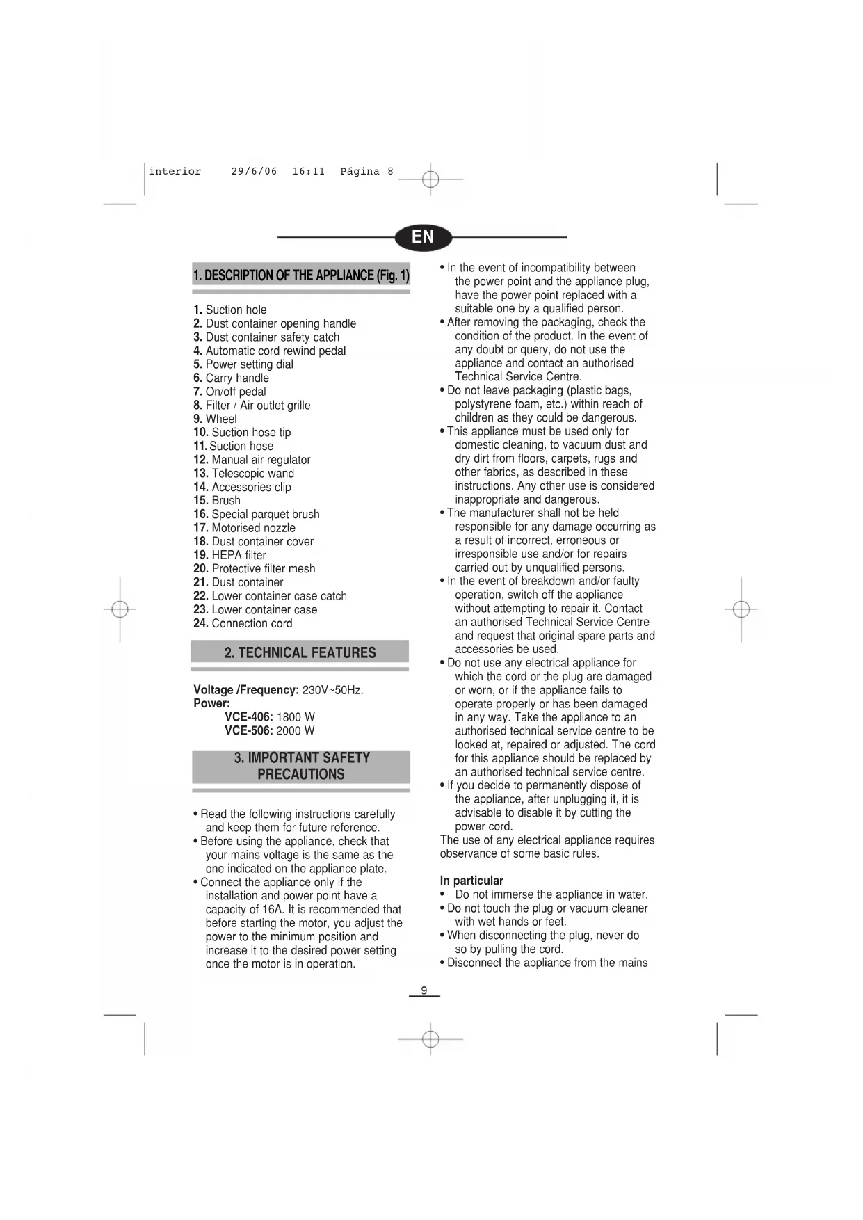 VCE506SET - Aspirateur FAGOR - Free user manual and instructions