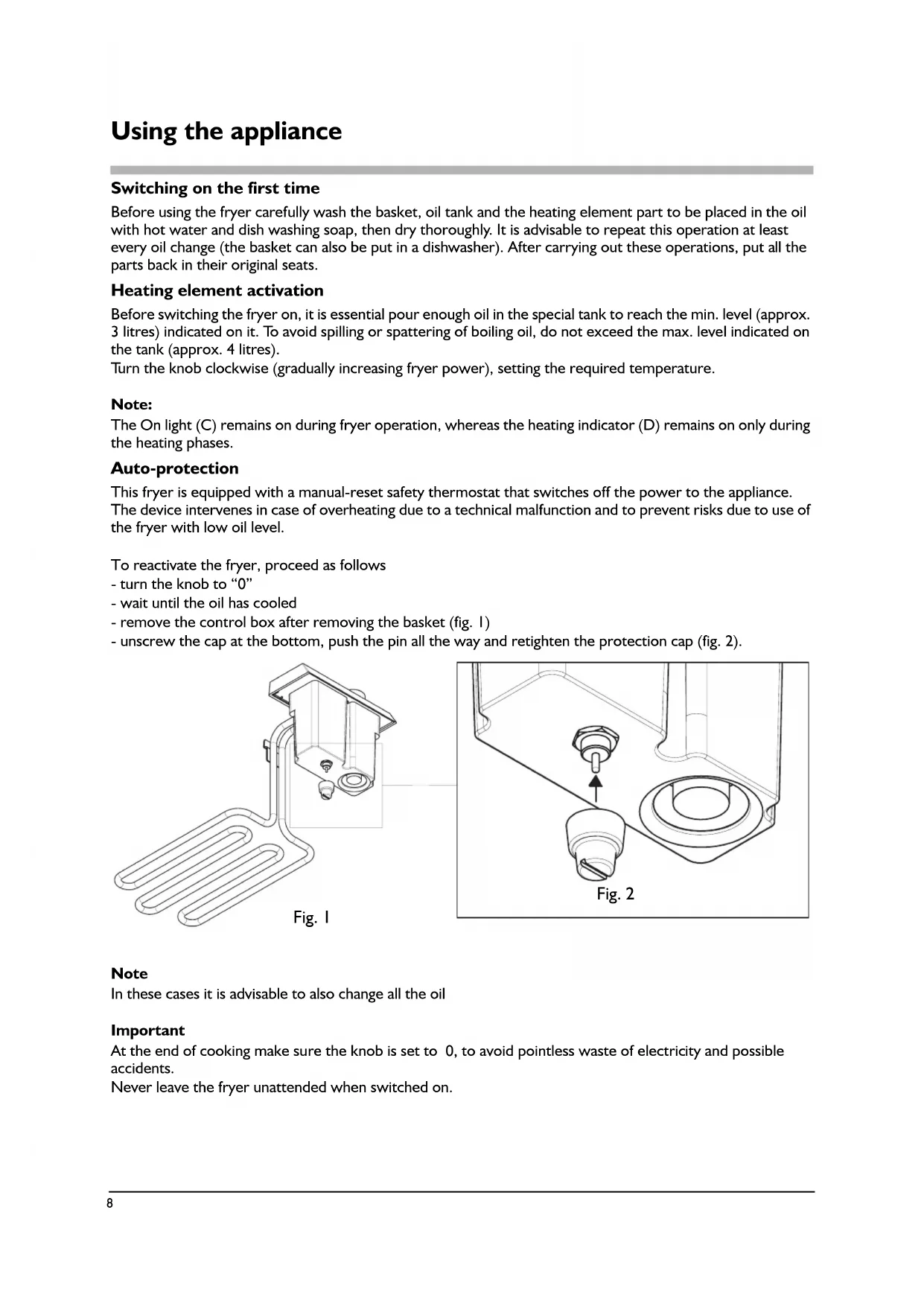 Each time after cooking always make sure that the oil has not fallen below the min. level; top-up if necessary.