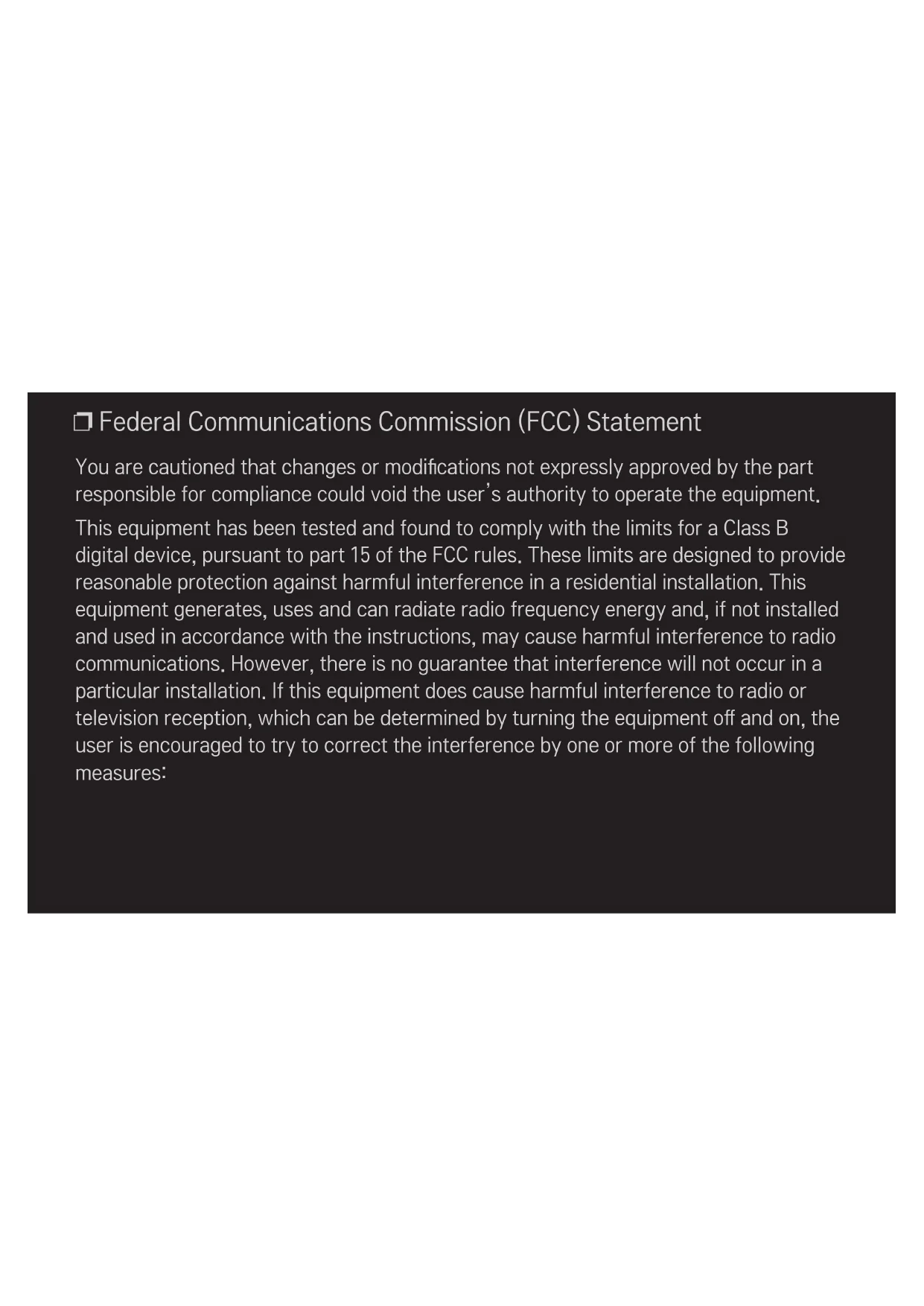 This device complies with Part 15 of the FCC Rules. Operation is subject to the following