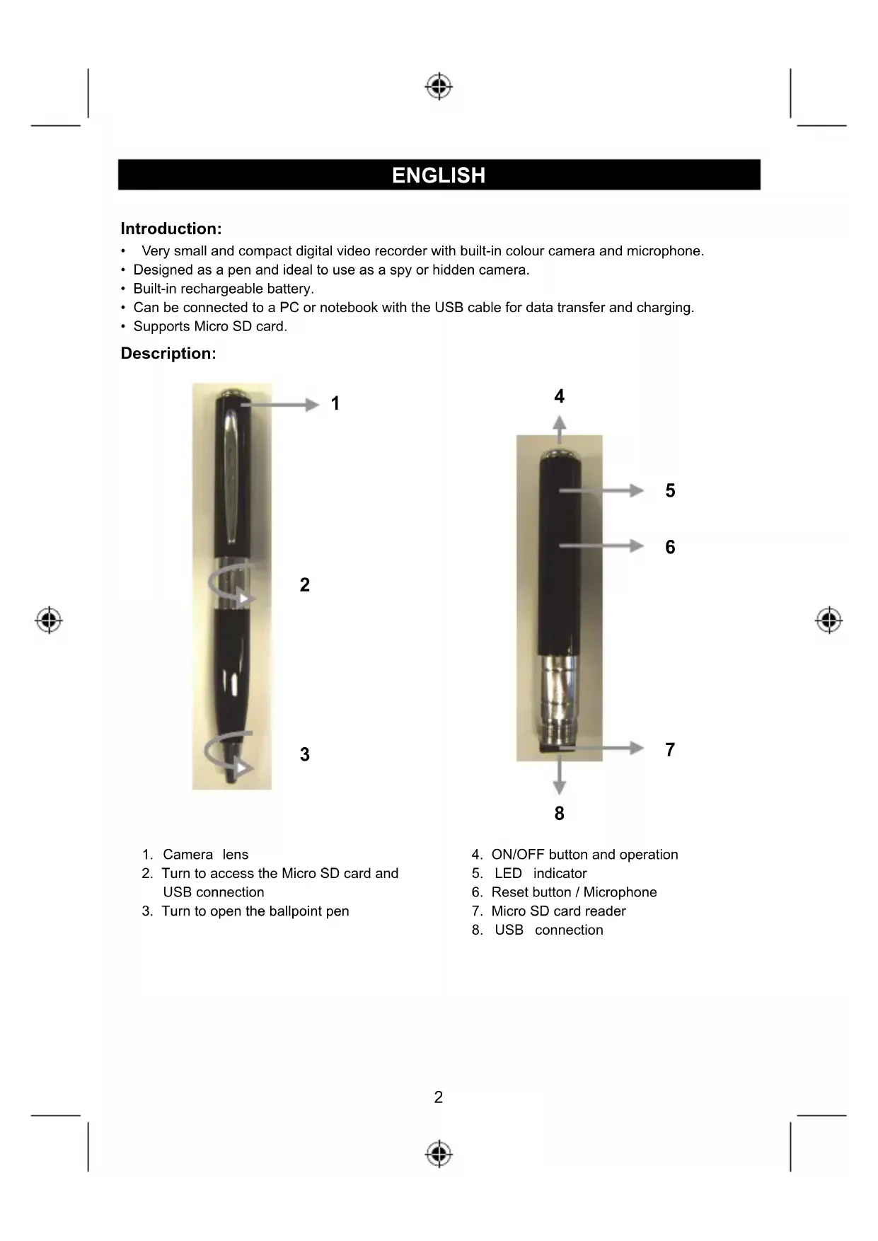 - Designed as a pen and ideal to use as a spy or hidden camera.
