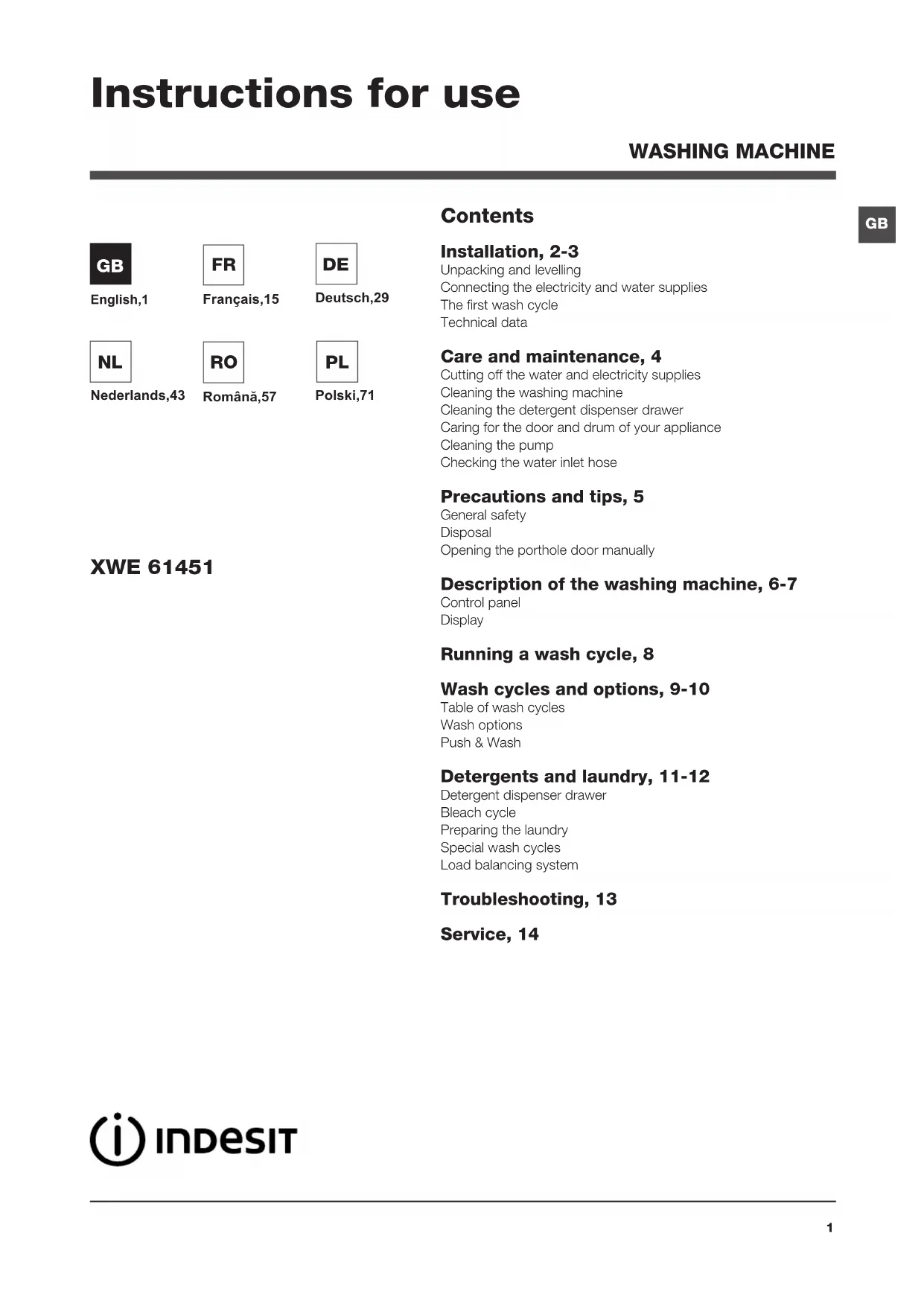 USER MANUAL XWE61451WEU INDESIT